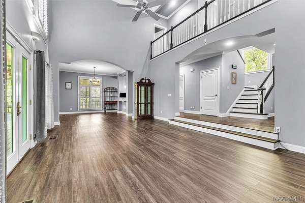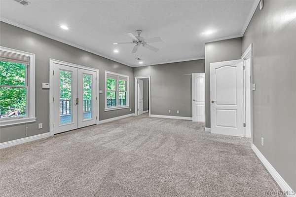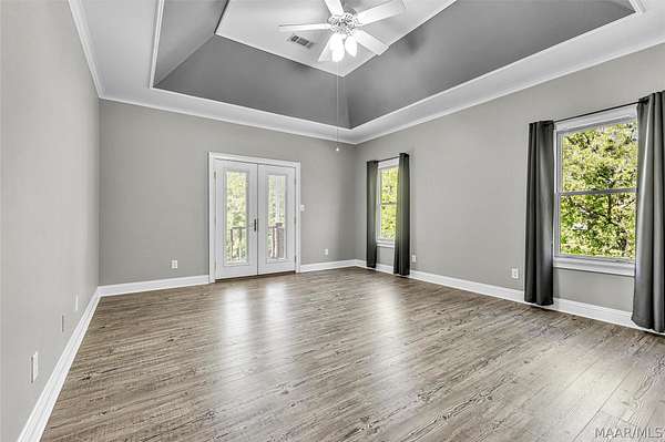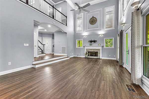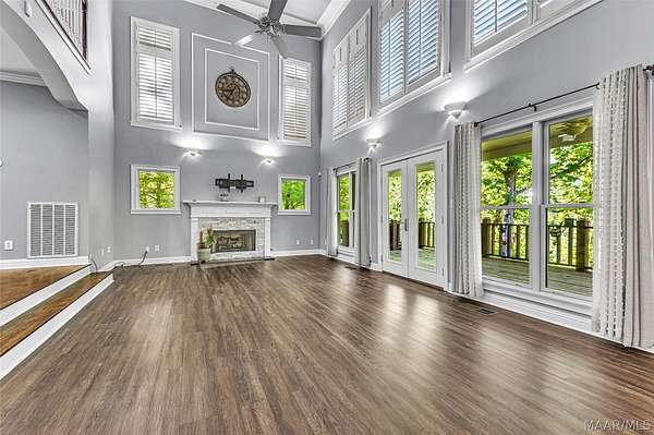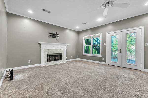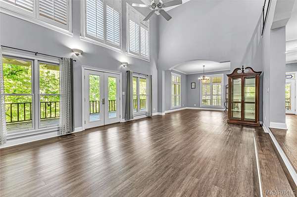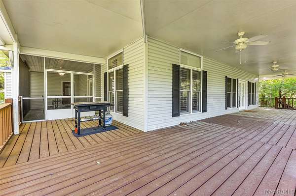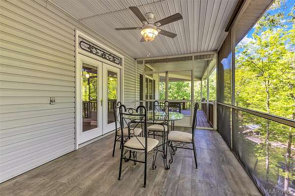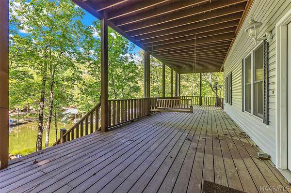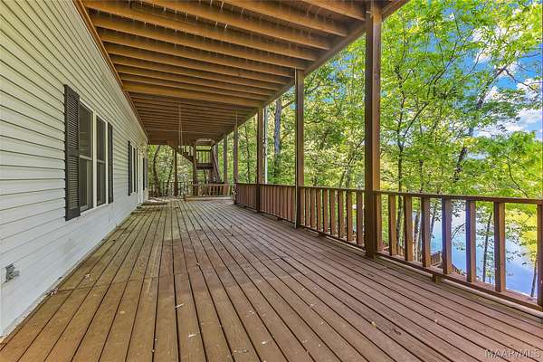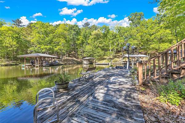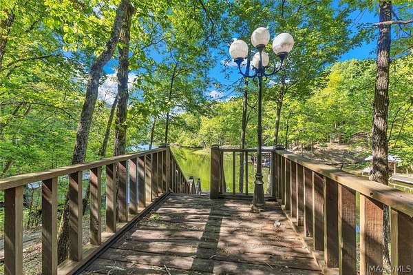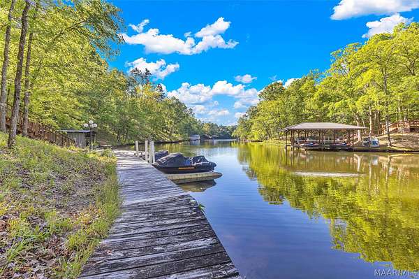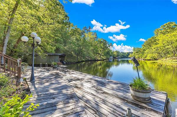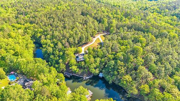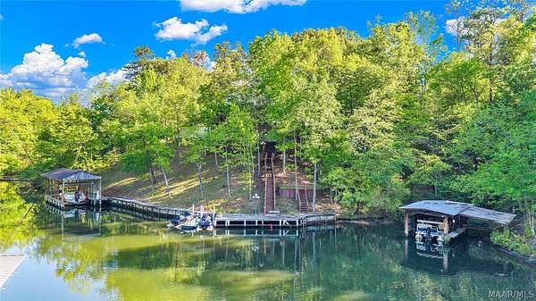 Stunning Lake Jordan retreat offering space, privacy, and water views from nearly every angle. Situated on approximately 2+/- acres, this home is designed for full-time living and perfect weekend escapes. This spacious home features a main living area that welcomes you with volume ceilings, expansive windows, and French doors that open to wrap-around decks-creating seamless indoor-outdoor living and ideal entertaining spaces. The large great room is filled with natural light and centered around a cozy fireplace, while the formal dining room provides the perfect setting for gatherings. The kitchen offers abundant cabinet space, a convenient work island, and easy access to a screened porch overlooking the lake-perfect for morning coffee or unwinding in the evenings. The private primary retreat is located upstairs along with an additional bedroom or office. The primary bath is beautifully appointed with a large walk-in shower and a relaxing soaking tub. The lower level is built for entertaining and guests, featuring a spacious recreation/family room with a gas log fireplace, two generous sized guest bedrooms, and a convenient Jack-and-Jill bath. This level opens to yet another expansive deck with stunning lake views. Outdoor features truly set this property apart, including easy-access stairs to the water, a walkway and golf cart path leading to the pier and boathouse, two PWC ports, and approximately 260+/- feet of waterfront. The boathouse includes an electric lift, making lake life effortless. Additional amenities include a whole house Generac system, two-car garage, separate carport, heated and cooled workshop, and extra storage. A circular driveway provides ample parking for guests. With its private setting, expansive outdoor living spaces, and thoughtful layout, this exceptional lake home is perfect for entertaining family and friends or simply enjoying peaceful waterfront living. If lake life is calling, this one answers loud and clear.