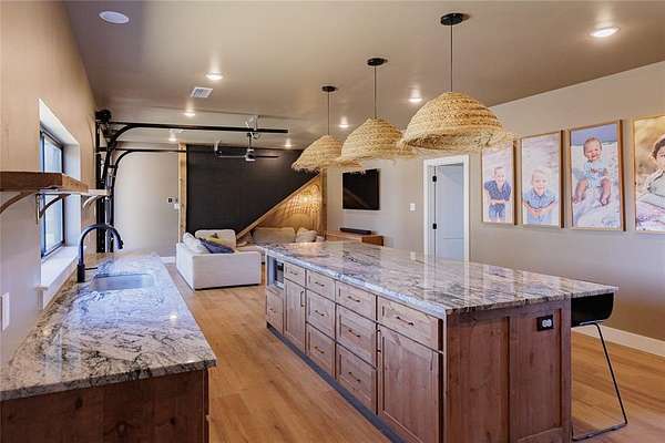 - Decorative Lighting, Eat-In Kitchen, Granite Counters, Kitchen Island, Open Floorplan