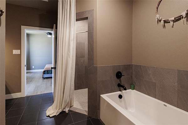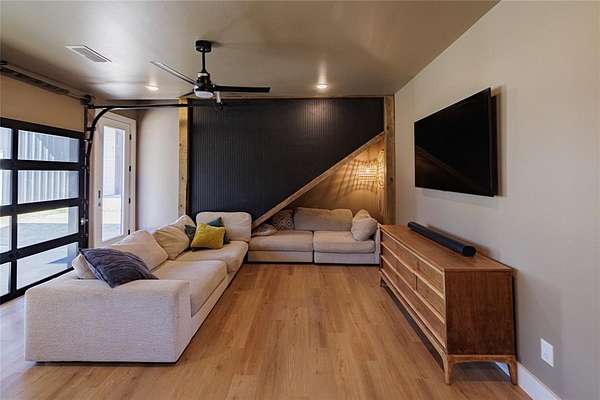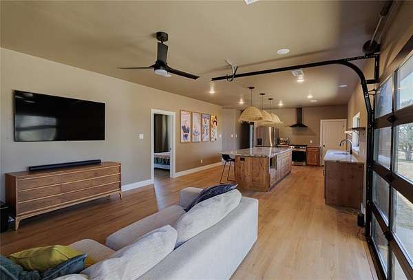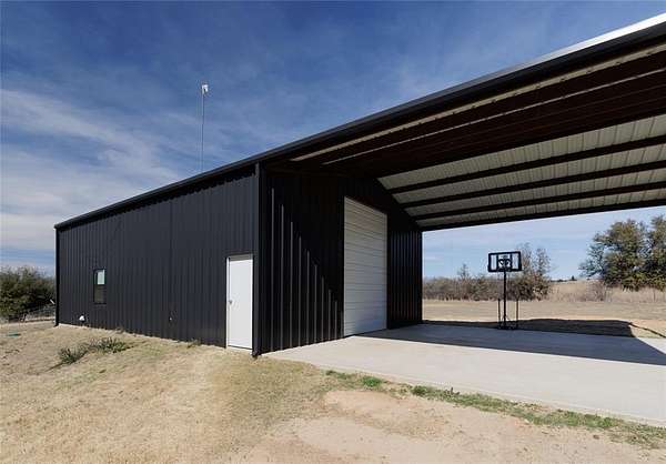 Country Living at its finest! This 4 bed, 2 bath Barndominium, is nestled just north west of the quaint community of Greenwood Texas! The home sits on a smidge over 10 acres, features an open floor plan with spacious kitchen that is phenomenal for entertaining, hybrid living room with indoor outdoor option depending on the weather. The large glass roll up door allows you to open it during beautiful weather and enjoy the outdoors and fresh breezes, or keep it closed to prevent mother nature from sneaking in! The floorplan is a split plan with the master bedroom featuring its ensuite bathroom, large soaking bathtub, separate walk in shower, dual vanities, and walk in closet. On the other end of the home, the guest bedrooms share a bathroom with dual vanities and shower tub combo, and tucked between the back two bedrooms is a storm shelter! Upstairs, there is plenty of room for you to envision what you could do! There is a little over 600 feet nearly completed being finished out as a bonus space, and there is nearly another 500 sq ft on the other side of the separating wall to give more room. In total you have space for nearly 3000 square feet of living space. The Barndo is spray foam insulated, so keeping it comfortable shouldn't be an issue. Outside you have a spacious shop with large overhang on the front. The shop is 30x40 with 25 ft overhang, spray foamed, and has a bathroom and mini split to keep it climate controlled when needed. This property gives you the big open skies of Texas, room to roam, and if you play your cards right, you can stop by Greenwood Grocery for catfish or a great cheeseburger!