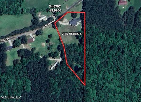 From the intersection of Hwy 15/Hwy 368 in Blue Mountain, MS: Travel east on Hwy 368 for 1.4 miles to CR 708. Turn left and travel 0.5 miles to property on the right