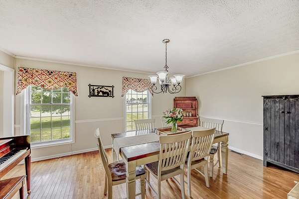 Gorgeous sunsets, sprawling farm views, quiet solitude, a fenced-in grazing pasture and a massive garden plot are just a few of the stand-out features of this ''rare find'' property. Nestled just off of infamously-scenic HWY 33 towards Herrington Lake and historic Shaker Village, this location is ideal if you're seeking the peace of a rural setting, yet still want close proximity to modern conveniences. With two horse stalls and 5.6 acres of level pasture, bring your horses or farm animals... NO deed restrictions! And the large metal barn at the rear of the property provides ample storage for your farm equipment, boats and toys. Inside the stately brick colonial home, you'll find a beautiful traditional floor plan with a formal entryway, both formal and casual living spaces, a formal dining room, a spacious kitchen with ample cabinetry, and a first-floor laundry and bath. Upstairs, four spacious bedrooms and two full baths finish out the floor plan -- with the master suite boasting its own attached bath and massive walk-in closet with custom shelves. You just have to see how well this property lays! The house sits just far enough back off the road for privacy and low road noise,. and offers ample front, back and side yards for privacy. The land is completely flat, making it manageable and easy to mow. Burgin Independent School District. Call today to set up your personal tour!