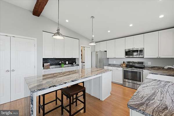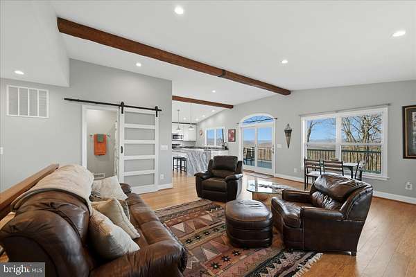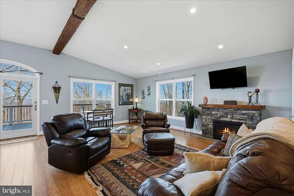 Enjoy stunning mountain views from this beautiful 3-bedroom, 3-bath home in the desirable Apple Mountain Lake community. Situated on just over 2 acres, this home features an open floor plan with a vaulted beamed ceiling and stone gas fireplace, creating a warm and inviting living space. The gourmet kitchen offers custom cabinetry, granite countertops, stainless steel appliances, farmhouse sink, and a large island-perfect for entertaining. The spacious primary suite includes a walk-in closet with convenient pass-through access to the laundry room. Step outside to an expansive deck and covered patio overlooking breathtaking mountain and valley views. The walk-out lower level includes a recreation room, third bedroom, full bath, and a bonus room ideal for a home office, gym, or guest space, plus generous storage. Community amenities include a private lake, pavilion, playground, basketball and tennis courts. Convenient to Front Royal, Shenandoah National Park, Skyline Drive, the Shenandoah River, wineries, hiking, and dining, with a great commuter location to Northern Virginia. A perfect blend of mountain views, modern comfort, and outdoor recreation. Enjoy the video tour and floor plan. All sizes are approximate.