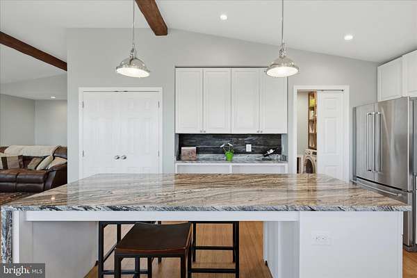 - Built-Ins, Carpet, Entry Level Bedroom, Exposed Beams, Family Room Off Kitchen, Island Kitchen, Pantry, Recessed Lighting, Walk-In Closet(s), Wood Floors