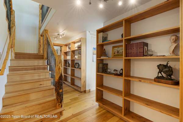 Tucked in the shadow of the majestic Tetons, this stunning home is situated on an expansive 5-acre parcel that is adjacent to Grand Teton National Park. The property boasts cathedral ceilings and immense windows that frame breathtaking views of the Tetons, creating a serene and picturesque living experience. Located within the exclusive Solitude subdivision, and amidst an ancient wildlife corridor, this property allows you to witness the beauty of nature right from your doorstep. The home features an enormous art studio and shop, offering a large and versatile space that can be converted to suit a variety of homeowner needs. Solitude Subdivision provides dedicated, private access walking trails to the Snake River, enhancing your outdoor living experience. Designed with entertaining in mind, the home offers exceptional indoor and outdoor spaces perfect for hosting gatherings and enjoying the tranquil surroundings. This unique property combines luxury, natural beauty, and versatility, making it a rare gem in the heart of the Tetons.