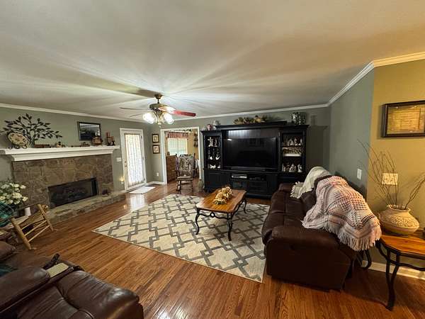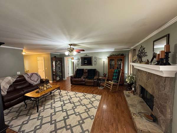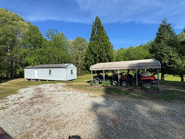 The land itself offers an attractive balance of hardwood timber, open usable acreage, and water features. A prominently positioned stocked pond enhances both recreational enjoyment and aesthetics, while Leatherwood Creek runs along the northern property boundary, adding natural beauty, wildlife habitat, and year-round water appeal.