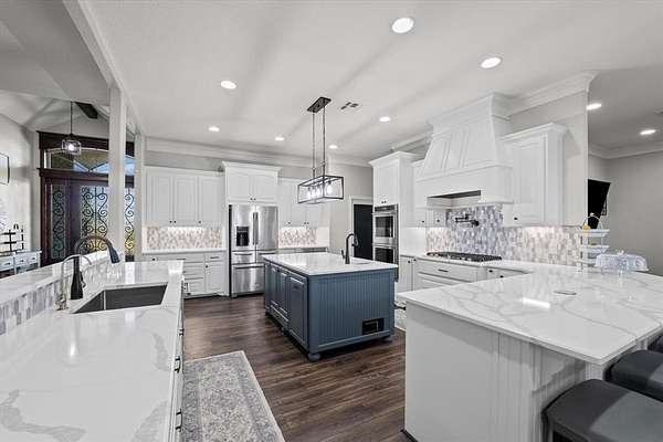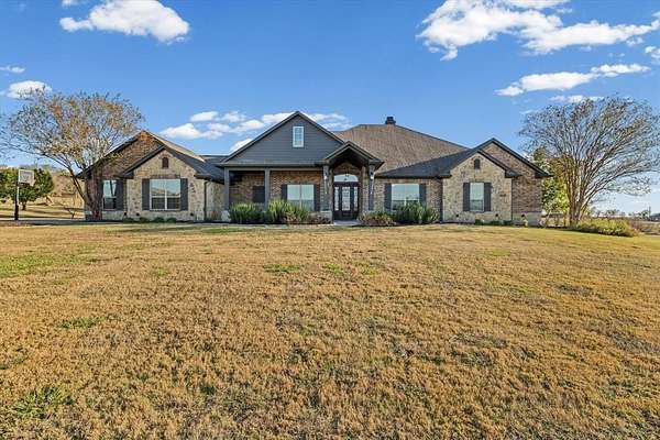 Absolutely stunning custom home on 2.016 acres in highly sought-after Lorena, Texas! This impressive 3,694 sq ft residence offers 4 spacious bedrooms, including two primary suites, along with a dedicated office showcasing gorgeous scenic views. Step inside to an open-concept floor plan designed for both everyday living and entertaining, where the chef's kitchen truly serves as the heart of the home. Enjoy gorgeous quartz countertops, a prep sink, dreamy 5 burner gas range, and large walk-in pantry, all overlooking the expansive family room with a cozy wood-burning fireplace. The main primary retreat features two walk-in closets, a serene spa-like bath with freestanding soaking tub, walk-in shower, and dual vanities, plus direct access to the laundry room through the closet. A second bedroom suite boasts its own full bath. Upstairs, you'll find an oversized bonus room currently used as a home theater. Outdoor living is just as impressive with an enclosed back patio featuring a second kitchen, grill, and half bath, ideal for entertaining year round. The pool-ready backyard already includes electric provisions for pool equipment and a convenient outdoor shower, along with an in-ground trampoline, fire pit, and separate storage building. The oversized three-car garage offers workbenches, sink, and dedicated freezer & refrigerator space. Additional features include spray foam insulation for energy efficiency and high-quality finishes throughout. This one truly has it all--space, luxury, functionality, and location. Call to schedule your showing today!