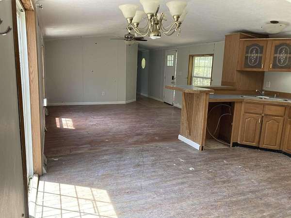 Great opportunity to own a spacious three-bedroom, two-bath single-wide mobile home offering approximately 1,280 square feet of living space on a private 2.22-acre lot in Eddington, Maine, conveniently located just 20 minutes from Bangor and Brewer. The home features an excellent split-bedroom layout, with the primary suite situated on one end of the home for added privacy. The primary bedroom includes a large attached bonus room suitable for a home office, nursery, or sitting area. The primary bathroom offers a double vanity, a separate soaking tub, and a stand-up shower. On the opposite end of the home are two additional bedrooms and a full bathroom. The home is set on a concrete slab foundation and is tied down, with a drilled well and septic system. Heating is provided by a Thermo Pride forced hot air furnace. The property is priced to reflect its condition and will require repairs and updates. The roof needs immediate repair or replacement due to an active leak around the skylight into the kitchen. The kitchen requires replacement, most flooring throughout the home needs to be replaced, and additional general improvements are needed, including fixtures, trim, paint, and some drywall repair. Seller financing is available with $10,000 down, an estimated monthly payment of approximately $1,200, plus real estate taxes currently under $100 per month. With acreage, privacy, and proximity to Bangor, this property offers strong potential for sweat equity or future improvement.