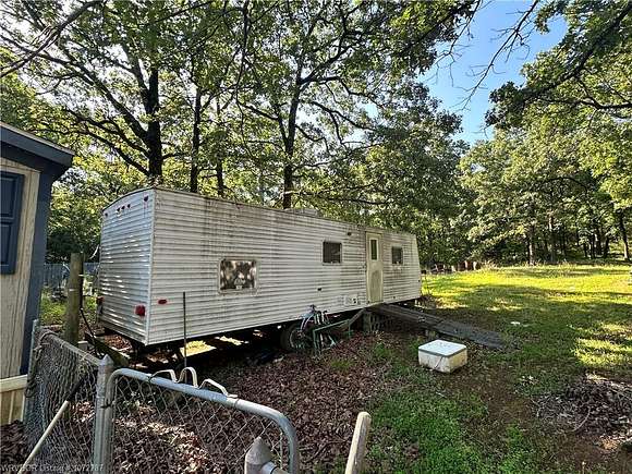 Secluded home or recreational property in Southern Sebastian County. 5 acres that backs up to Bob Bouyer Park which encompasses 470 acres of Walking Trails, Equestrian Trails, and Pavilions Hike or ride horseback out of the property to beautiful Sugarloaf Lake Includes 28x66 Doublewide that needs a little TLC but could be move in ready with minimal work Acreage is fenced and cross fenced with 2 storage buildings and a bonus rv trailer plumbed in to be used as additional living Quarters or taken on the road