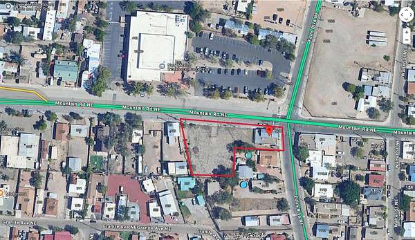 REDUCED PRICE Attention investors, this is a great corner location for your development. Located at the intersection of Mountain Rd and Edith Blvd, for high visibility. This property is zoned MX-M, see docs for the many uses. The vacant 2,400 s.f. building was originally used as a commercial space downstairs with a residential apartment upstairs (live/work). Since it's glory days the building has been tagged ''Substandard'' by the COA, so would need extensive repairs to function again. Best to have it demolished and start fresh on a nice piece of land, that is near downtown, the Interstate as well as many businesses and residential properties. Access points from both Edith and Mountain Roads, utilities are on site and/or nearby. Building conveys ''as-is''.