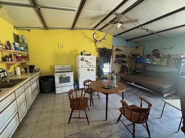 Est $969/moWow over 4 acres with a tiny Home. The home is 576 Sq feet, with bathroom and open studio type home includes a full kitchen, laundry area, bedroom,, family room and small living area. This home has a new hot water heater and is perfect for a hunting cabin or make some tweaks to make it an adorable tiny home.
