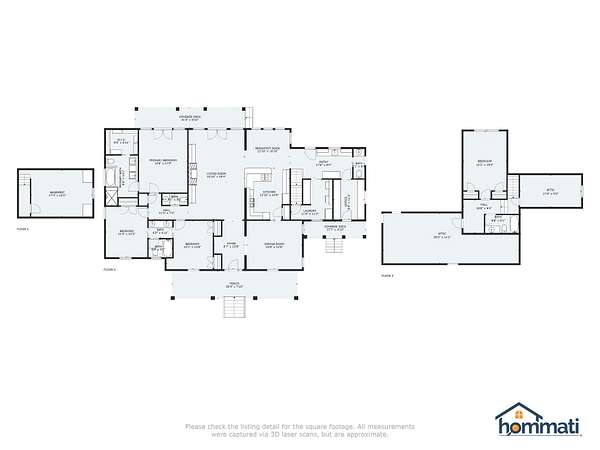 - Bedroom x 4, Den, Dining Room, Hobby Room, Kitchen, Living Room, Master Bathroom, Recreation Room