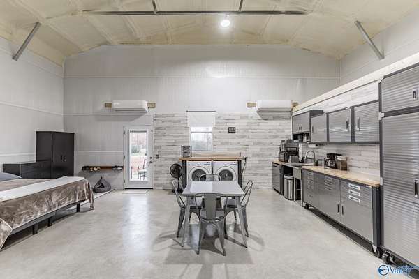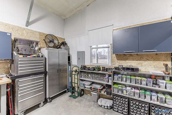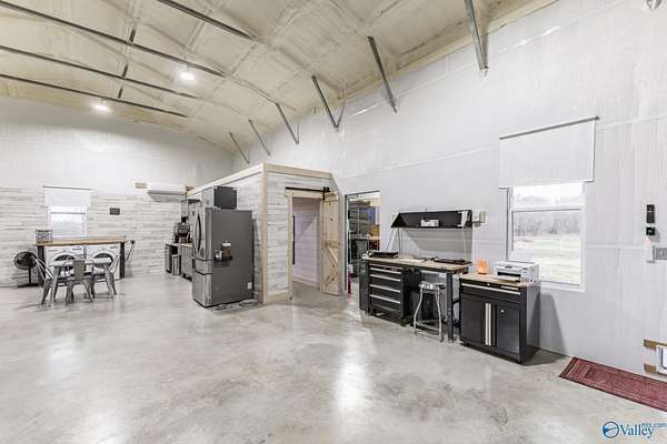 This remarkable 2025 40x50 metal building on 6 acres of peaceful farmland features the coolest finishes - a 4 ton mini split with 3 heads (expandable to 5); spray foam insulation, radiant heat barrier bubble wrap, RV and regular powered and insulated garage doors (talk about veristility), low-e windows, industrial ceiling fan, a whole house filtered water system, sealed and polished concrete floor, underground utilities, covered porch, complete, a separate storage room and THE COOLEST KITCHEN AND BATHROOM AROUND. The owners have executed on every detail making this a absolute MUST SEE. Live here while you build your dream home where the power, water, & septic are installed and ready for you.