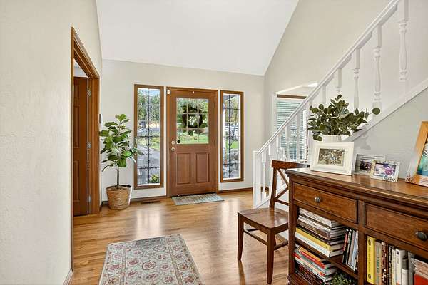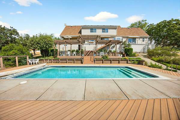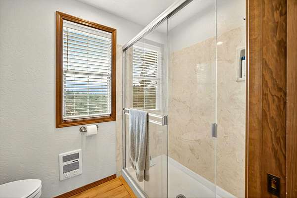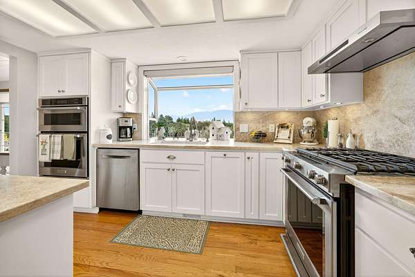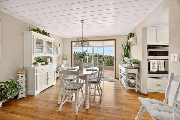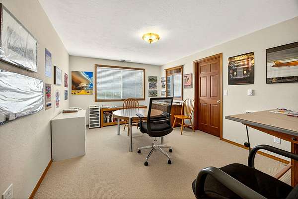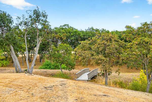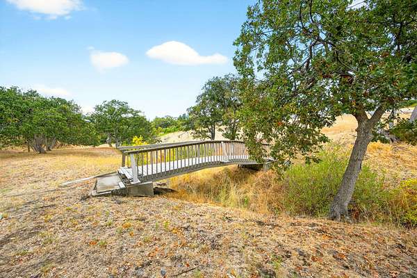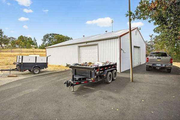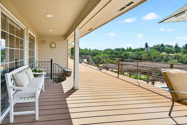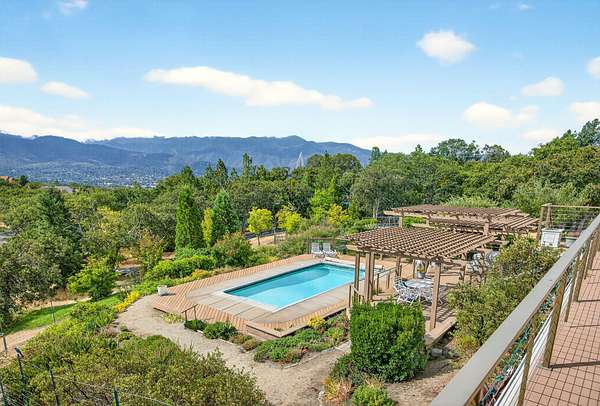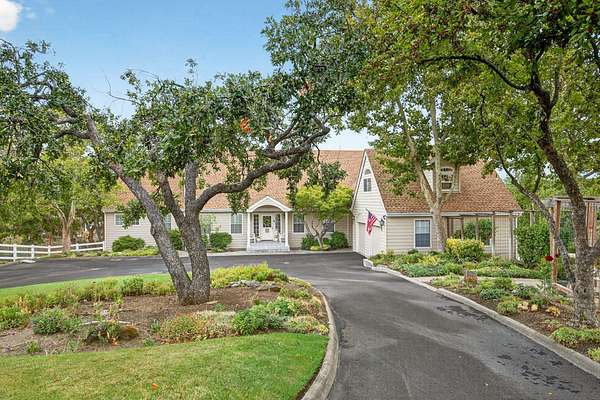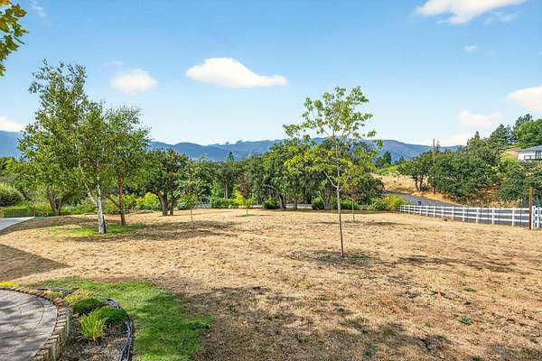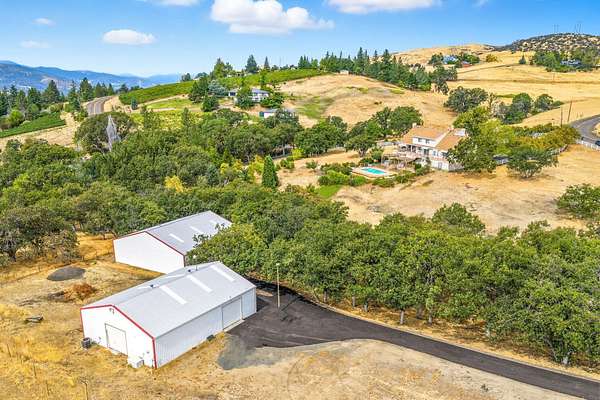 Incredibly desirable Ashland setting-private, quiet & close to town yet distinctly rural. On 5.09 acres with panoramic views of Mt. Ashland & the city, this 3566 sq ft 1985 home offers 5 bedrooms, 4.5 baths & two full primary suites, including a main-level retreat. The main floor features two sitting rooms with wood-burning fireplaces, a living room bar & a 2019 kitchen remodel with quartz leather-finish counters & painted cabinetry. Upstairs features two bedrooms with walk-in closets, a large bath & separate HVAC, plus a guest suite with a loft & window seat. Outdoor amenities: pool with Trex decking, gazebo, apple & plum trees, Gearky Creek, Talent Irrigation water & two workshops (50'x50' & 42'x36'). Other highlights: 2-car garage with workbench, wine cellar, auto generators, water softener, security system & abundant storage. Updates: roof, exterior paint, trellis, decking, railings, pool/spa (2018); HVAC (2019); blinds (2019); electrical/lighting (2018).