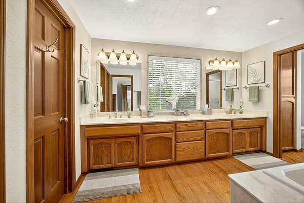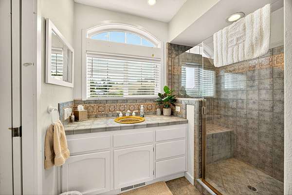 - Breakfast Bar, Ceiling Fan(s), Double Vanity, Enclosed Toilet(s), Fiberglass Stall Shower, Granite Counters, In-Law Floorplan, Kitchen Island, Linen Closet, Pantry, Primary Downstairs, Solar Tube(s), Solid Surface Counters, Stone Counters, Tile Counters, Vaulted Ceiling(s), Walk-In Closet(s), Wet Bar