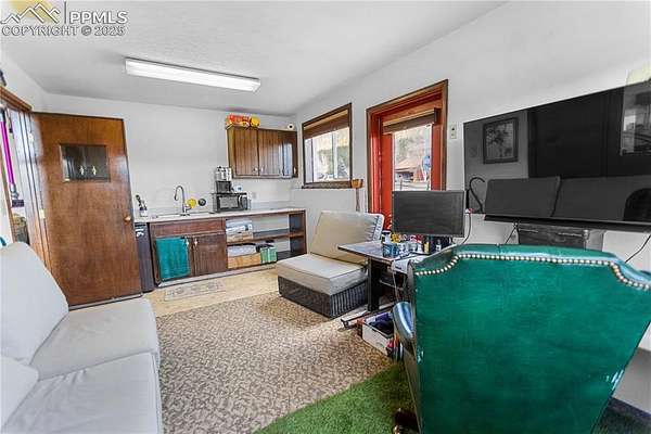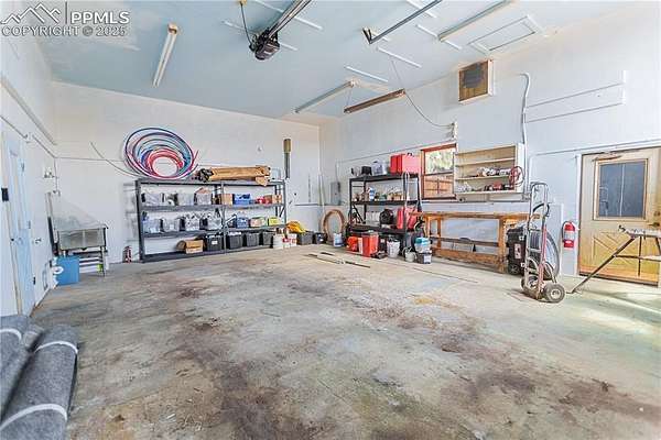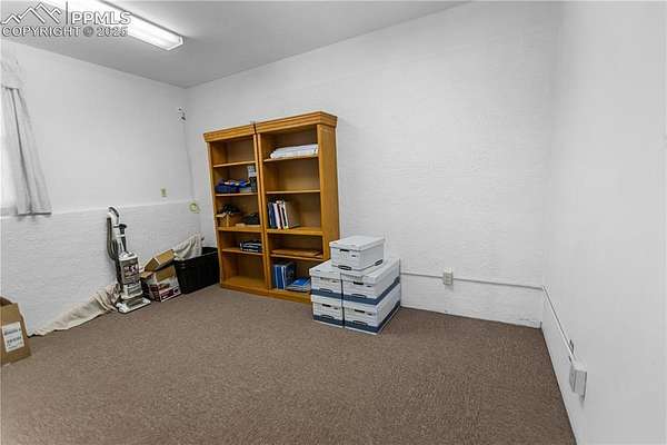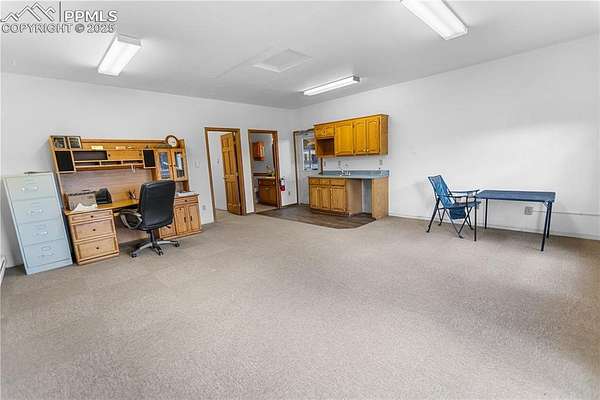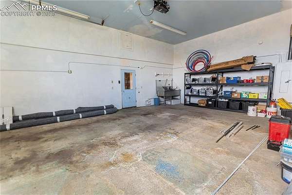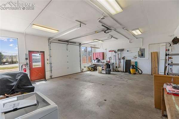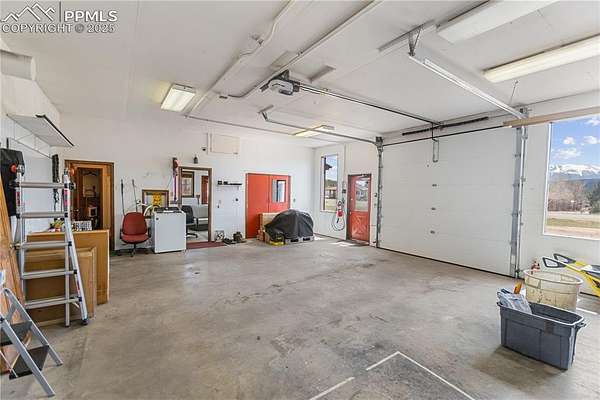 This commercial property features two distinct buildings on a combined 0.7 acres, benefiting from desirable Neighborhood Commercial zoning. The unique bermed construction and Trombe Wall passive solar design offer potential energy efficiency. Building #1 (approx. 1408 sq ft): Equipped with robust 400 amp electric service and high-speed fiber internet. The layout includes a versatile 23x31 garage area with a 13 ft ceiling, a 12x12 garage door, 30 & 50 amp outlets, and a wash sink. A 20x20 showroom with carpet flooring provides a customer-facing space, complemented by a 10x14 office, a 5x10 bathroom with a single vanity and stand-alone shower, and an 8x10 storeroom. Building #2 (approx. 960 sq ft): Features 200 amp electric service and high-speed fiber internet. The garage area measures 23x28 with 10 ft ceilings, a 10x9 garage door, and an industrial exhaust system. The interior includes a 10x17 office with a convenient kitchenette (refrigerator included) and a 5x10 bathroom with a single vanity and stand-alone shower. Outside, the location has great Pikes Peak views, and a south facing parking lot.