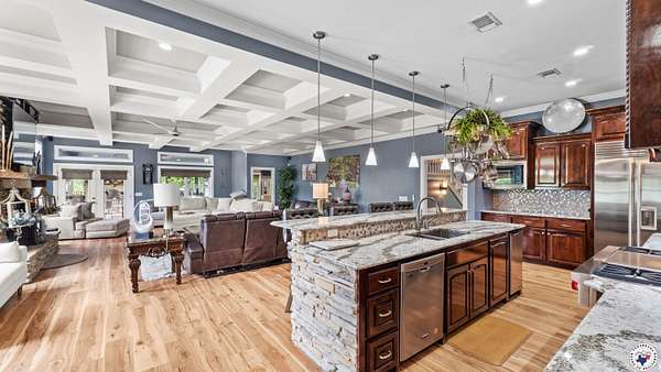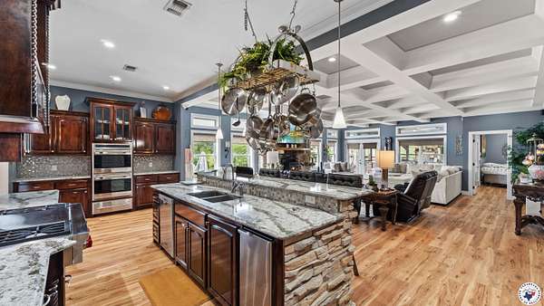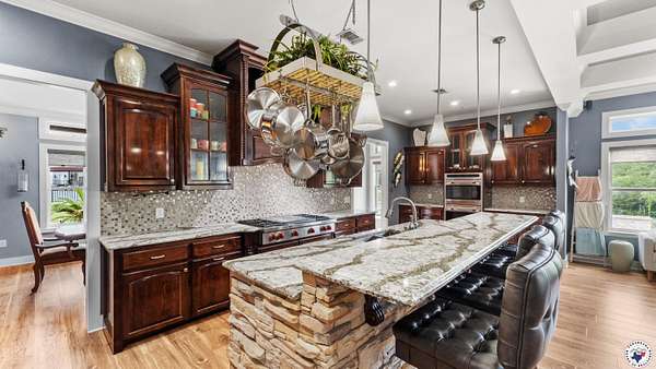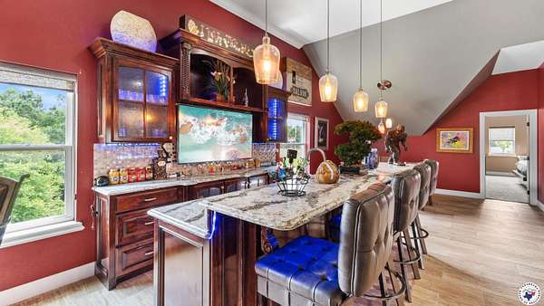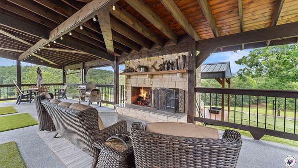 An awe-inspiring 43 acre estate that commands attention and captivates at every turn. True luxury meets effortless livability in this remarkable retreat - a showplace and a sanctuary in one. Thoughtfully designed as both a dream residence and vacation worthy haven, it boasts resort style features that make every day feel like an escape. Boasting 6700 square feet, five bedrooms, and three and a have baths, this spacious layout is built for entertaining. Step outside into your private paradise, where a full outdoor kitchen, rock fireplace, and abundant seating set the stage for unforgettable gatherings. The showstopping infinity pool with spa overflows into a second pool! Outside this dreamland you'll also find not one (30x90), but two (30x60) G PLUS a horse barn complete with stalls. The estate is neighbored on three sides by core of engineering land creating ultimate privacy. The outdoor possibilities continue to be endless; fishing, ATV or Horseback riding. There's also a recreational lake a few minutes down the road; offering fishing, boating, swimming, water skiing, etc. Only 20 minutes to dining, lake life or casinos at Broken Bow! This is a must see, once in a lifetime home.
