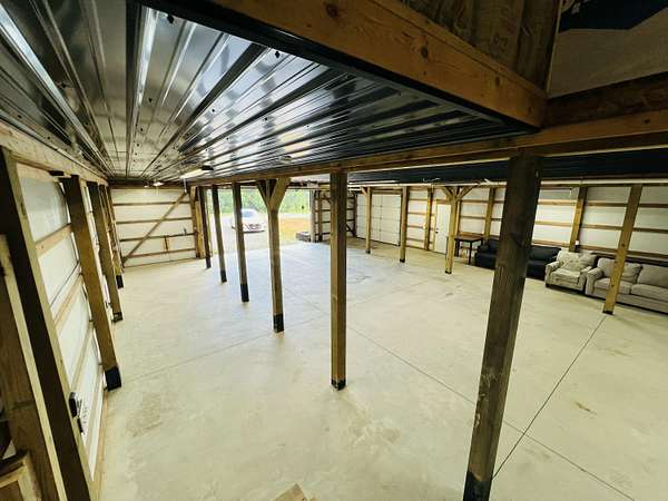 Rustic Charm Meets Modern Potential | Barndominium on 7.75 Acres Tucked away on a scenic drive, this unique monitor-style barndo sits on 7.75 surveyed acres of gently rolling land-offering both serenity and opportunity in the heart of rural Laurel County. Privacy and room to grow-this is your chance to live the dream while planning for more. Built in 2022, the home features: A massive 1,728 sq. ft. garage on the lower level with 9'6' ceilings, durable 6' concrete floors, and dual garage doors (1 motorized, 1 manual). A 960 sq. ft. upper-level living space with an open-concept design, cathedral ceilings, 1 bedroom, and 1 bathroom. Quality finishes including engineered hardwood in main living areas, floating floors in bedroom & bath, and dual ductless mini-split units for heating and cooling. Infrastructure in place: Electric (Jackson Energy) already run with 2 junction boxes-ready for additional homes. Water (West Laurel Water District) 30' wide recorded easement for ingress, egress, and utilities. Outdoor highlights: A cleared house seat ready to build on, Abundant wildlife-deer, turkey, and more.