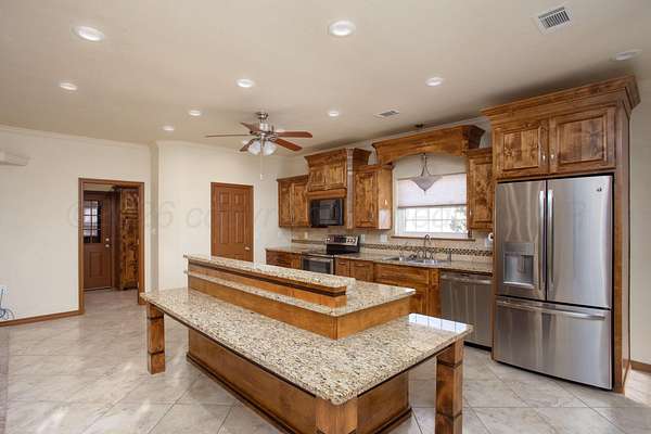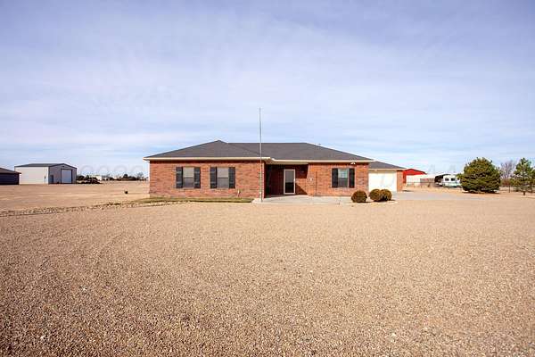 Impeccable home in Bushland, TX 3/2/2 sits on 2 acres. Offering tons of storage and upgrades throughout the home. Inside you'll find an Open Concept layout featuring granite countertops, upgraded appliances, & beautifully updated bathrooms. Isolated primary BR complete with an oversized master closet! Major improvements provide added value, including newer windows, Roof that is approx. 2 years old, an above-ground storm shelter, a gun safe in garage, GENERAC GENERATOR , propane tank and a covered back patio. For those who love to entertain or need extra prep space, the garage includes a canning kitchen, perfect for food storage projects, hobbies, or additional workspace. Full house water softening system & reverse osmosis drinking system located under kitchen sink. CORRECT SQ FT 2,113