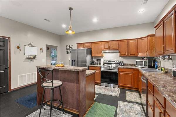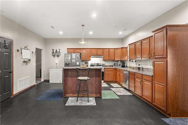 Charming 1,440 sq ft ranch-style home sitting on 1.5 acres in the quiet small town of Green Ridge, MO! This unique 1-bedroom, 2-bath home features an open-concept layout with durable concrete floors, giving it a clean, modern feel and low-maintenance living. The spacious interior offers plenty of flexibility, with great potential to add additional bedrooms or living spaces to suit your needs. Outside, you'll find a large carport and two outbuildings-perfect for storage, hobbies, or workshop space. The partially fenced acreage provides room for pets, gardening, or simply enjoying the peaceful country setting. Located just minutes from the Katy Trail, this property is ideal for outdoor enthusiasts. Conveniently situated about 25 minutes from Whiteman AFB and 25 minutes from Sedalia, it offers the perfect balance of small-town living with easy access to nearby amenities. If you're looking for space, versatility, and room to grow, this property is full of opportunity!