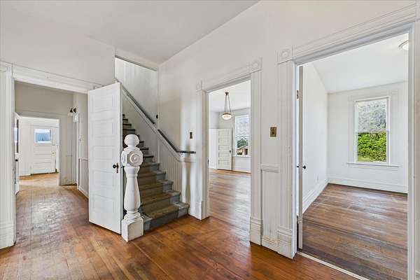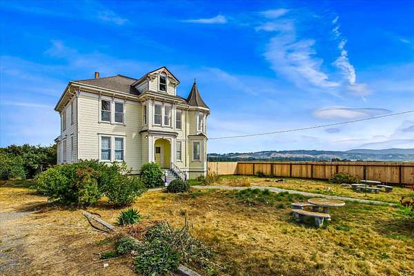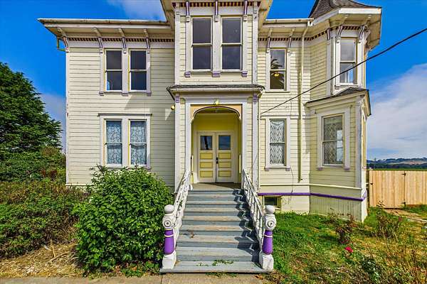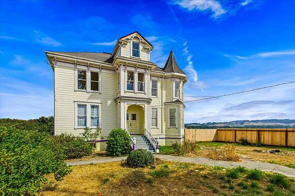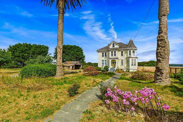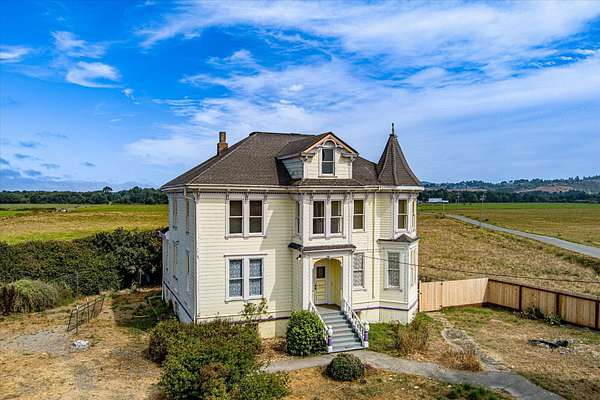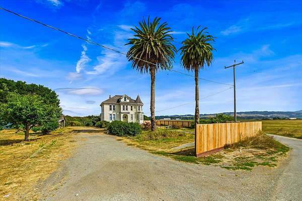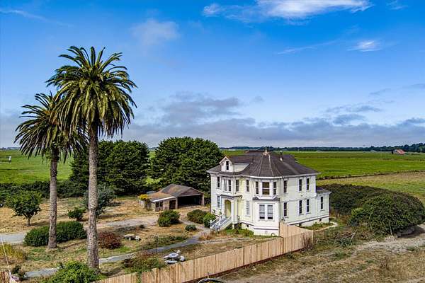 This Queen Anne Victorian is a true gem in the lush Ferndale Valley. Just minutes from the historic Victorian Village of Ferndale, the home offers privacy, sweeping pastoral views, and timeless architecture. Framed by two iconic palms, the residence stands as a landmark property awaiting its next chapter. It features four large bedrooms, multiple living and sitting rooms, a formal dining room, and abundant natural light throughout. A walk-in attic and basement offer exceptional storage. Outside, the 16 acres offer room for livestock or horses. A detached two-car carport with potting room add to the property's versatility. Listed $250,000 below current appraised value, this is a rare opportunity to restore a classic to its original glory while enjoying country living.