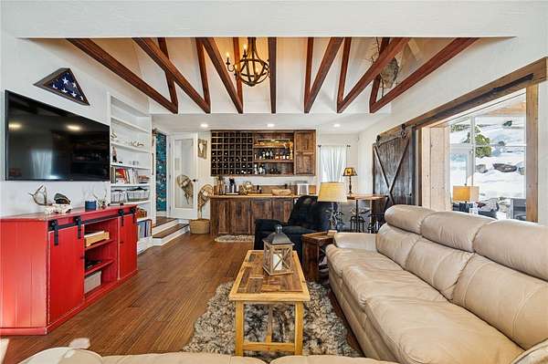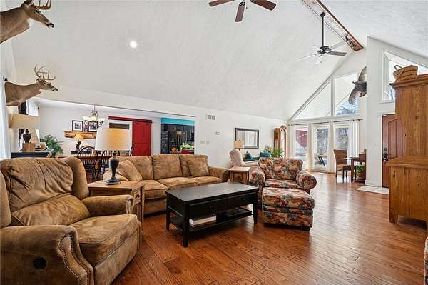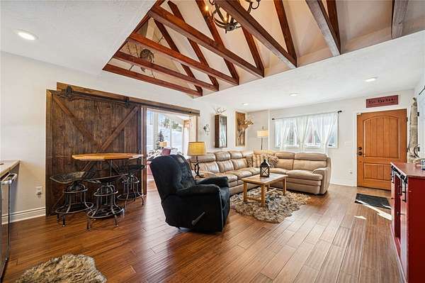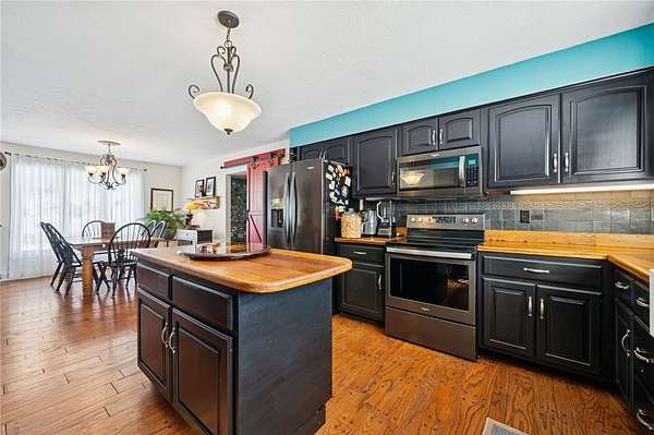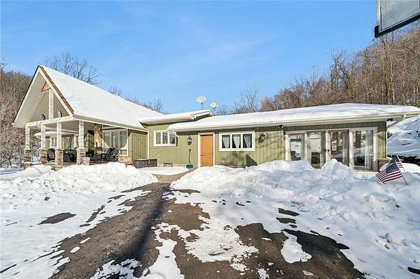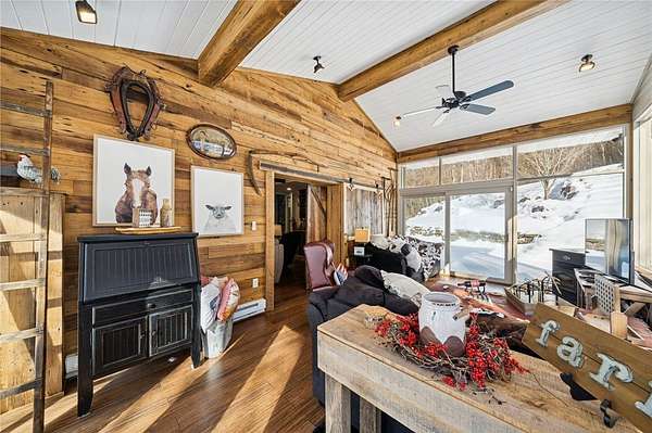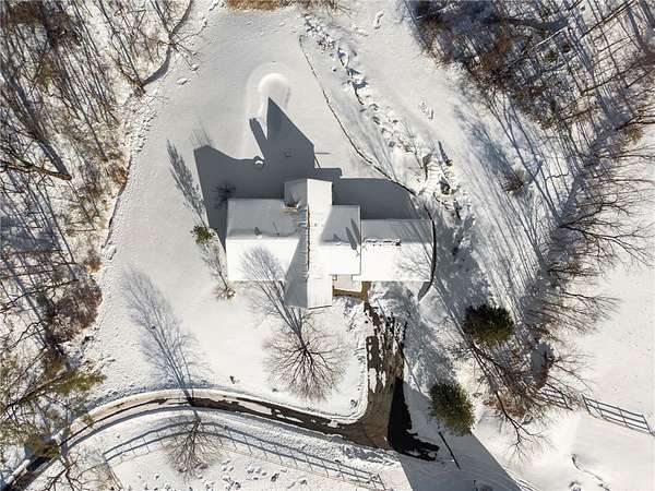 Tucked away on 9.5 private acres, this stunning 4-bedroom, 3.5-bath home offers the perfect blend of space, comfort, and functionality--complete with a large barn ideal for horses. Step inside from the expansive covered front porch into a welcoming entry and living room featuring soaring ceilings, oversized windows that flood the space with natural light, and a gorgeous stone fireplace as the focal point. The living room opens directly to a spacious back porch overlooking the backyard and pool, creating an effortless indoor-outdoor flow. The kitchen and dining area offer ample space for everyday living and entertaining, with custom built-in cabinetry, stunning wood countertops, and all appliances included. Just beyond the kitchen is a truly special den and bar area showcasing a custom wood bar, high ceilings, and beautiful wood detailing--perfect for hosting or relaxing. Continue on to the bright and airy sunroom, complete with a pellet stove and peaceful views of the surrounding property. The main level features a spacious primary suite with a walk-in closet and a luxurious en suite bath offering double sinks, a stand-alone soaking tub, and a walk-in shower. An additional main-level bedroom includes its own private bathroom, along with a separate full bath and a large laundry room for added convenience. Downstairs, you'll find two more bedrooms, one with an attached half bath, along with abundant storage space and possibilities for a workout room, office, etc. Outside, the property truly shines with a large barn featuring four horse stalls, already set up for equestrian use. With open land, privacy, and thoughtful design throughout, this home is a rare opportunity for those seeking space, serenity, and a lifestyle that embraces both comfort and nature. For added peace of mind, this home features a deisel generator. Truly a beautiful and welcoming home!