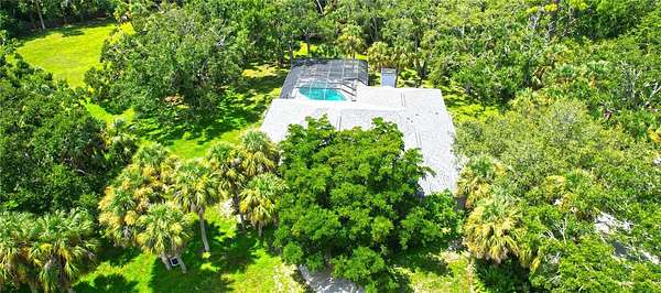 Discover a truly unique opportunity with this private 1.9-acre property offering freedom with no deed restrictions, Horses allowed, no HOA, and no flood insurance required. Just minutes from the new Sarasota Memorial Hospital in Nokomis, Nokomis Beach, and historic downtown Venice, this home combines privacy with convenience. The residence features three bedrooms and three full bathrooms, including a potential mother-in-law suite with its own entrance including an office or possible fourth bedroom, family room, bathroom, and an oversized storage room with custom floor-to-ceiling cabinetry. Recent updates include a new roof and gutters in 2024, a three-zone A/C system under warranty, and fresh exterior paint in 2021. Inside, bamboo floors enhance the living and dining areas, while outside, the grounds are fully fenced with a privacy gate. Enjoy a 36x16 pool that is nine feet deep with paver decking, under a 54x36 screen enclosure, plus a detached two-car garage and a 20x20 outbuilding potential guest house, studio or workshop. Surrounded by serene views in every direction, this irreplaceable property offers the perfect blend of peace, space, and proximity to shopping, dining, medical facilities, and pristine Gulf beaches.