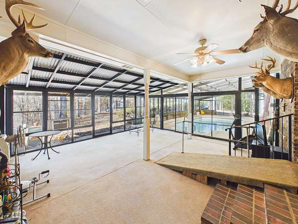 This spacious 4 bedroom 3.5 bath home offers approximately 3,079 square feet of living space plus an additional 2,255 square foot unfinished basement with endless possibilities for storage or future expansion. Situated on approximately 33 acres across two parcels, the property features a private outdoor setting with a pond located down the hill in front of the home, creating a peaceful retreat that feels like a vacation year round. Interior finishes include hardwood floors carpet and tile throughout. An enclosed back porch opens directly to an in ground enclosed pool area, providing a unique space for relaxation and entertaining. The expansive acreage offers flexibility for a variety of uses with abundant privacy whether for recreation hunting or simply enjoying the natural surroundings