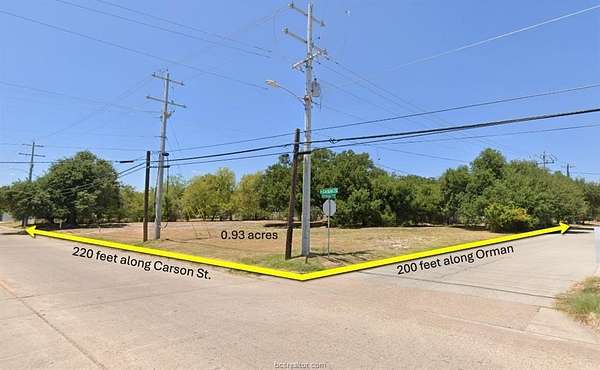 0.93 acre Corner Commercial Lot with flexible MTC zoning! Development of 4 bedroom / 4 bathroom townhouses may be allowed on this tract - contact broker for details. High-speed fiber optic internet cable recently installed on property - ready to be incorporated into your design. $70M+ Midtown Park! This fantastic hard corner property, with over 220' of frontage on Carson & approximately 200' frontage on Orman, includes more than 5 oversized (50'x150') lots and is situated on the NE edge of the park complex across the street from Bombers Ballpark and the beautifully renovated & award winning Travis Fields. Travis Bryan Midtown Park is an emerging economic engine featuring the Legends Event Center, Topgolf, Travis fields, & Bombers Ballpark. Additional amenities include the Schulman entertainment complex (under construction), featuring a multiplex movie theater, 24 lane bowling alley, microbrewery/restaurant, pickleball courts - all fronting on a lakefront boardwalk. Nearly weekly softball/basketball/volleyball tournaments currently drawing thousand of visitors. This has the potential for development into an outstanding mixed use commercial/residential property and may represent one of the strongest available redevelopment plays in the region!