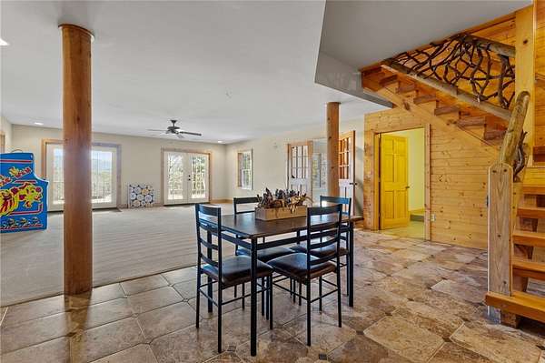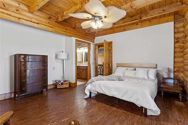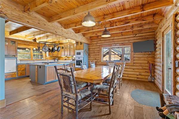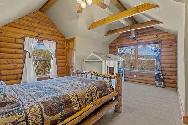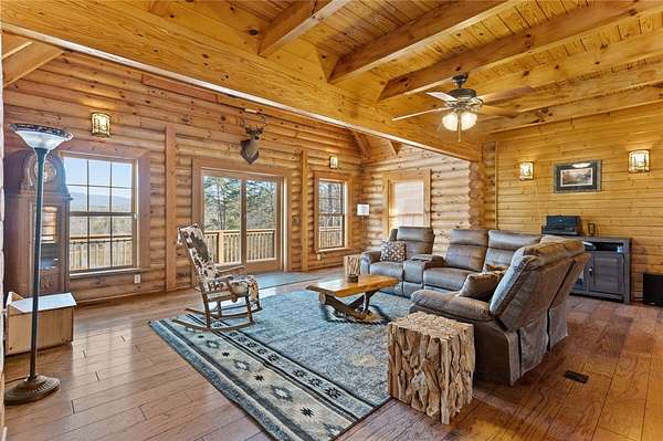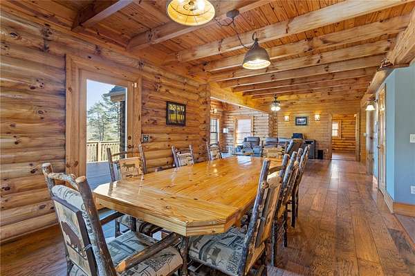Country chic log cabin located minutes from some of the best camping, hiking, kayaking, fishing and trail riding in the state. It is close to a number of area trails, lakes and mountains. Less than an hour from two of the country's most attractive cities according to US News. Between Greenville, SC and Asheville, NC, home of fabulous dining, shopping and the historical Biltmore Estate. This mountain home is truly a one of a kind retreat with captivating views of Caesars Head Mountain all year and Table Rock is seen throughout the neighborhood. Beautiful vistas include colorful sunrises, spectacular sunsets and stars too numerous to imagine. This area offers quiet streets, friendly neighbors and lots of activities. The yard is completely fenced in and includes landscaped flower beds, hundreds of flowering bulbs, an orchard of fruit trees and berries, as well as a protected vegetable garden. Horse pastures surround the barn. This home is spotless and move in ready. The kitchen was remodeled a few years ago and includes a walk-in pantry, beautiful quartz countertops, gas cooktop, large sink and pull out drawers throughout. The island is perfect for entertaining. This house also has impeccable upgrades such as a Geothermal heat and air system, a full house generator and a hot water circulator. The back deck follows the full width of the house and covers the walk out paver patio below where the views never cease. The backyard offers recreational space with a firepit and a gently rolling hill down to the pond. This home is a one of a kind treasure and offers a lifetime of fun, friends, and family gatherings. If you are young at heart or the adventurist type, this home is for you. Welcome to your mountain home paradise. This custom Log home has 4 Bedrooms, 3 full baths, a powder room, and Flex room. It also boasts huge living spaces on both main floor & walk-out lower level. The Primary Bath has double sinks, a walk in closet & convenient chute to laundry room. Upstairs has a beautiful loft to sit and work on puzzles, or painting, while gazing at the inspiring mountain views. The inviting lower level has a custom wet bar, great for entertaining, which you can continue by walking outside onto the luxurious stone floor patio. This property is almost 6 acres, which is completely fenced in. Outside you can enjoy fishing in your OWN pond, on your OWN dock, horseback riding, and/or planting gardens. Before stepping back inside, you can rinse off under the outdoor shower in this stunning rock breezeway. The eye-catching barn has vast amounts of storage and two Stalls for your sweet equine friends. On clear nights enjoy a glass of wine on the opulent deck; gazing up at the star studded Milky Way. During the day, have a picnic under the Hemlock tree while viewing the majestic Blue Ridge Mountains. The detached oversized 3 car garage has a breezeway entering the lower level. This large acreage, all inclusive home, is the cornerstone of the neighborhood. You need to see it in person..