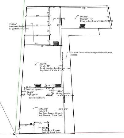 Approx. 8,050 sq ft tall-clearance warehouse space measuring about 115 ft by 70 ft with a clear height of roughly 14 ft 6 in. This large open area is ideal for equipment storage, fabrication, staging, or general industrial use. Includes a full drive-in bay door measuring approximately 13 ft wide by 13 ft 10 in high for easy vehicle and equipment access. Concrete floors throughout. Space currently has minimal power and lighting, but the owner is open to assisting with improvements such as upgraded electrical service, lighting, or other build-outs as needed, with costs recoverable through the lease. Flexible lease terms available. All measurements approximate; tenant to verify.