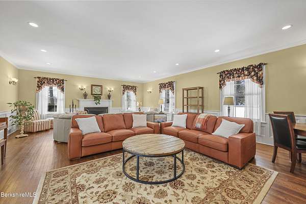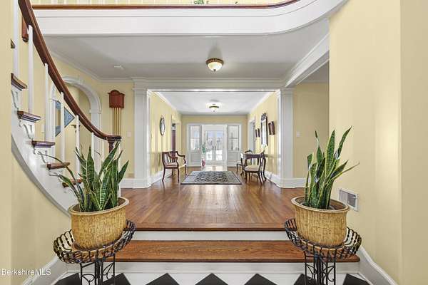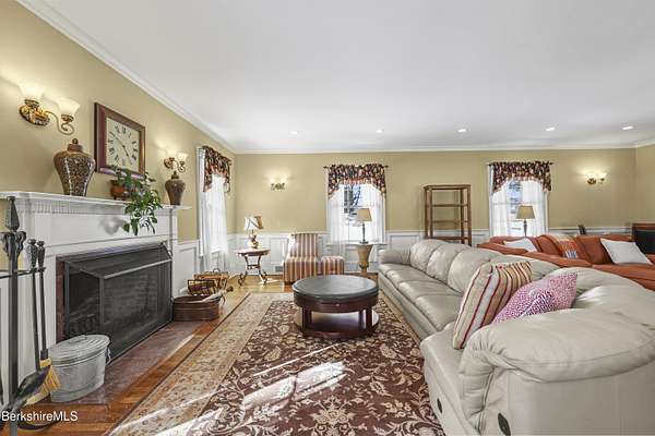 Own a Living Masterpiece. Meticulously curated by the current stewards since 2006. This Colonial Revival offers rare fusion of 18th-century authenticity and cutting-edge modern comfort. Designed for both grand-scale entertaining and intimate family life, this c1930, 7,894 sq. ft., Colonial Revival offers 6-bdrms & 4.5-baths. The interior is a treasure of artisan craftsmanship from the formal dining room with its magnificent shell-carved cove, to original cabinetry with rare wood inlays, hand-carved bookshelves, a classic butler's pantry, multiple stately fireplaces anchor the formal living spaces. Enjoy panoramic views and privacy from the grand porch overlooking 4 pristine acres. a state-of-the-art kitchen featuring Wolf and Sub-Zero, and no expense spared Geo-Thermal heating/cooling. Gracefully sited on pastoral grounds with distant mountain views, this circa-1930 Colonial Revival estate represents the elegance and cultural legacy of the Berkshires' celebrated country-house era. Attributed to prominent Pittsfield architect Joseph McArthur Vance, the residence was conceived as a refined summer retreat for a prosperous owner from a prominent Boston family who made the Berkshires their seasonal sanctuary in the early twentieth century. During the height of the Tanglewood years, the home was part of the region's vibrant artistic and social life, welcoming members of the Boston Symphony Orchestra and distinguished conductors Pierre Monteux and Charles Munch. The residence was also said to have hosted renowned Americana collector Henry Francis du Pont, who admired the home's collection of early American decorative arts. Blending architectural pedigree, cultural heritage, and the quiet beauty of its rural setting just minutes from Lenox, the estate stands today as a rare surviving example of the gracious Berkshire summer tradition--where music, art, and landscape converged in an atmosphere of timeless sophistication.