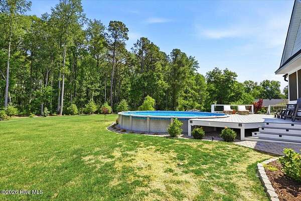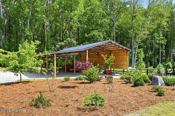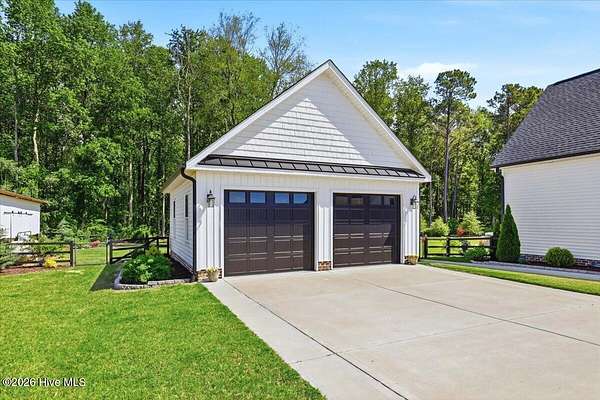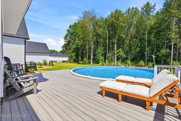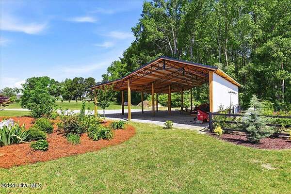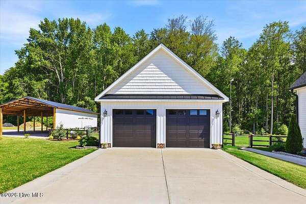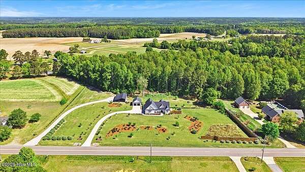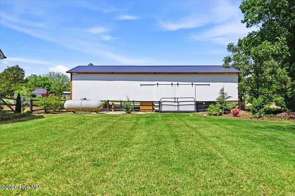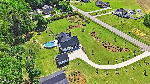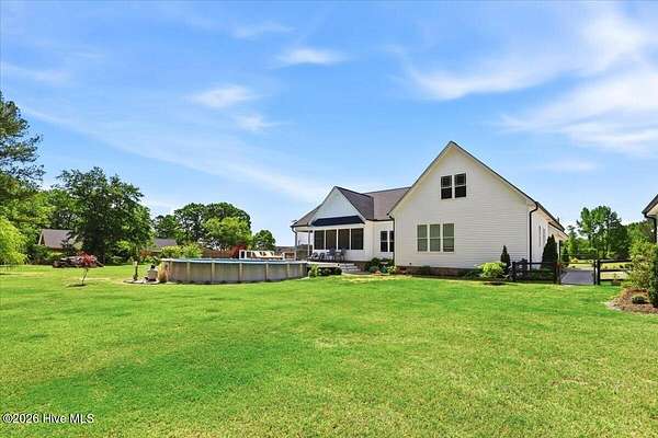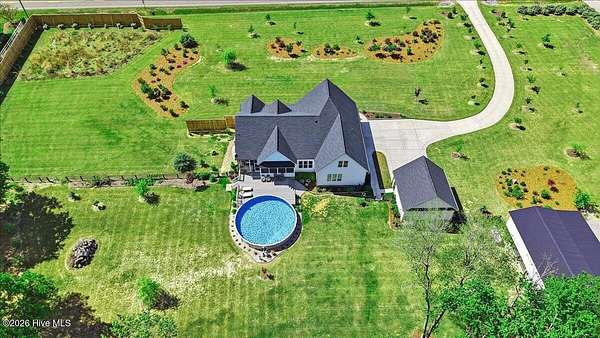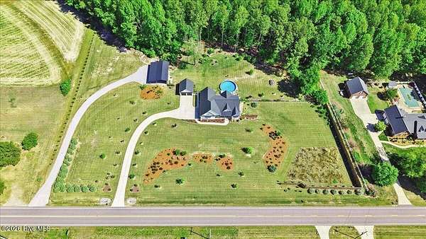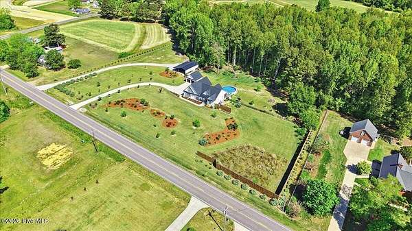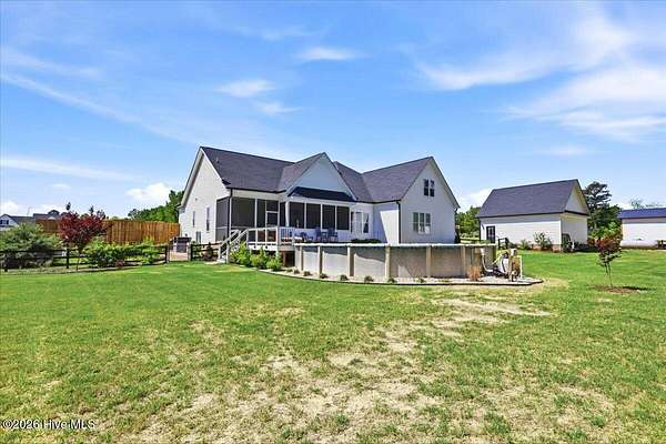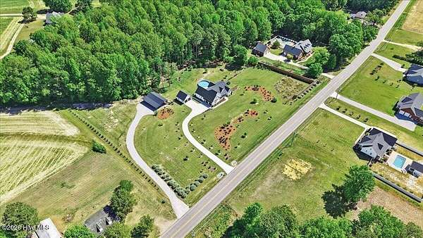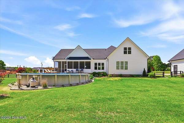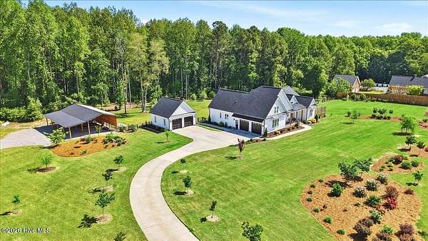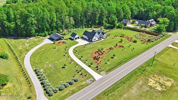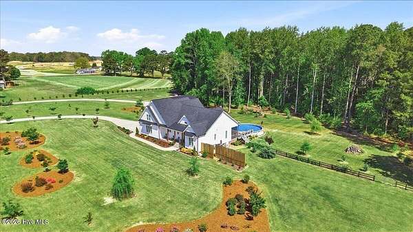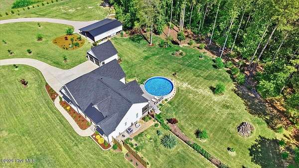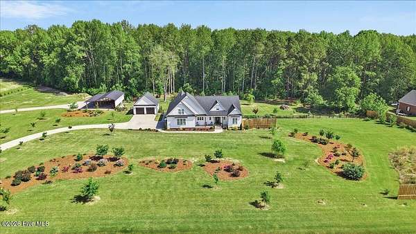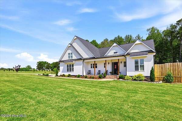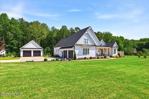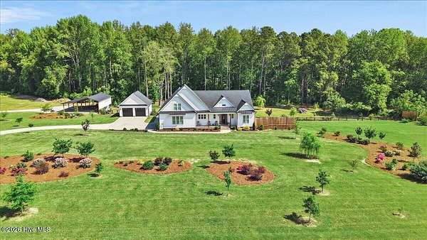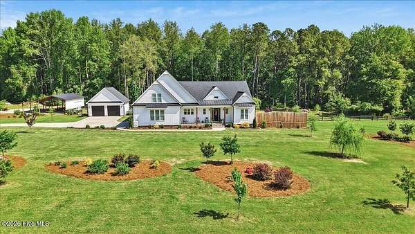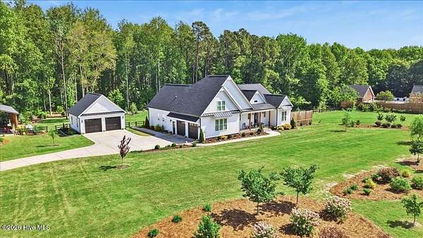 RARE OPPORTUNITY to own 5 ACRES of UNRESTRICTED LAND with NO HOA -- enjoy the FREEDOM to live how you want while owning a home that truly delivers with over 2,671 SQ FT of LUXURY LIVING SPACE! Conveniently located with an EASY COMMUTE to WILSON, RALEIGH, ROCKY MOUNT, SMITHFIELD and GOLDSBORO, this property offers the perfect blend of PRIVACY, FUNCTION, and CONVENIENCE. Built in the FALL of 2022, this CUSTOM HOME is MOVE-IN READY and loaded with character featuring BOARD & BATTEN VINYL SIDING, METAL ROOF ACCENTS, and a STUNNING ELEVATION. The land offers a perfect mix of OPEN CLEARED SPACE and NATURAL WOODED AREAS--ideal for ENTERTAINING, ANIMALS, or YOUR DREAM HOMESTEAD. FRUIT TREES & BUSHES are already maturing, plus a POLE SHED WITH ACCESS TO A 2ND DRIVEWAY, and DETACHED 2-CAR GARAGE are in place. Step inside to an OPEN, INVITING FLOOR PLAN designed for both EVERYDAY LIVING & ENTERTAINING with 10' CEILINGS throughout the FIRST FLOOR. The FAMILY ROOM a COZY FIREPLACE with BRICK & SHIPLAP SURROUND and BLOWER, flowing seamlessly into the GOURMET KITCHEN. The kitchen is a SHOWSTOPPER with QUARTZITE COUNTERTOPS, LARGE ISLAND, SLIDE-IN GAS RANGE, POT FILLER, CUSTOM HOOD VENT, FARMHOUSE APRON SINK, FLOOR-TO-CEILING CUSTOM CABINETS with PULL-OUTS & MIXER LIFT, UNDER-CABINET LIGHTING, FLOATING SHELVES, and a WALK-IN PANTRY. The FIRST FLOOR OWNER'S SUITE is a true retreat with a KING-SIZED LAYOUT, OVERSIZED TILE WALK-IN SHOWER, and STAND-ALONE SOAKING TUB. Two additional 1ST FLOOR BEDROOMS plus a HUGE BONUS ROOM offer flexible space for a MEDIA ROOM, OFFICE, or PLAYROOM. Don't miss the HUGE WALK-IN ATTIC for storage! Upgrades include WOOD FLOORING THROUGHOUT MAIN LIVING AREAS, CUSTOM TRIM WORK, 54+ CAN LIGHTS, TANKLESS WATER HEATER, WHOLE-HOUSE WATER FILTRATION SYSTEM, EXTERIOR UPLIGHTING & DOWNLIGHTING, TILE DOG WASHING STATION, and a SEPARATE WELL for OUTDOOR USE. Outdoor living is just as impressive -- enjoy the EXPANSIVE FRONT PORCH or relax on the SCREENED-IN BACK PORCH with STAMPED CONCRETE & TREX DECKING, overlooking your ABOVE-GROUND SALTWATER POOL and PRIVATE WOODED BACKDROP. Additional features include an ATTACHED 2-CAR GARAGE, AMPLE ROAD FRONTAGE, and USABLE LAND ON BOTH SIDES OF THE HOME offering TRUE FLEXIBILITY. If you've been searching for SPACE, PRIVACY, LUXURY FEATURES, and ENDLESS POSSIBILITIES -- THIS IS IT. MAKE YOUR NEXT MOVE, YOUR BEST MOVE.