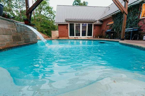 Major Price Improvement – Luxury Estate on 29 Acres | Pool | Guest House | Pond- Now Offered at $899,900. This private East Texas retreat delivers a rare combination of land, water, and luxury that would be difficult to replicate at this price point. Situated on approximately 29.45± acres, this exceptional property features a beautifully updated main residence, separate guest house, spring-fed pond, resort-style pool, and scenic rolling land with mature trees and wildlife. A gated entrance and winding drive lead to the impressive 5,200± square foot main home overlooking a spring-fed pond framed by ancient cypress trees. The home offers 5 bedrooms, a private theater with kitchenette, expansive game room with built-in bunk space, and a fully renovated gourmet kitchen featuring custom cabinetry, a 48” Viking Professional range, new flooring, fresh paint, updated lighting, and custom built-ins throughout. Outdoor living is designed for both relaxation and entertaining, with a heated saltwater pool featuring a slide, fountains, sun deck, and large patio areas. The property also includes a stone firepit with seating, gazebo and fishing dock on the stocked pond, a secondary pond, spring-fed creek, carport, henhouse, and ample space for a future shop, barn, or additional improvements. The guest home includes two bedrooms, two bathrooms, full kitchen, living area with fireplace, and its own utilities, making it ideal for multigenerational living, guests, or potential rental use. Located just a short drive from historic Jefferson, Caddo Lake, Linden, and Avinger, this property offers privacy, recreation, and luxury living in one of East Texas’ most scenic areas. A rare opportunity to own a true East Texas estate with land, water, guest accommodations, and resort-style amenities — now offered at $899,900. (Newly installed fiber optic internet available)