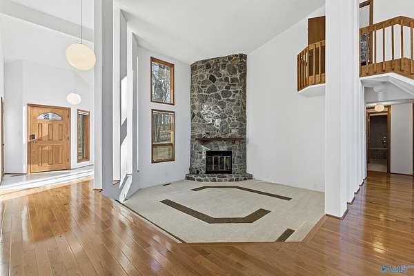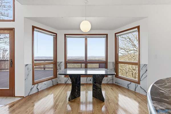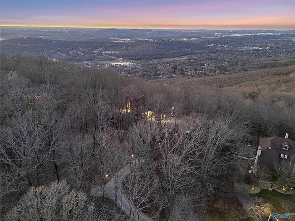 Luxury Huntsville estate with panoramic mountain and city skyline views near Redstone Arsenal and Space Command. Perched on Sunset Bluff, this architect-designed home offers over 6,000 sq ft on nearly 3 private acres with exceptional privacy. Intelligent construction includes vertical thermal shafts, integrated gas systems, and a 1,000-gallon propane tank for energy efficiency. Walls of windows capture stunning sunset views. Features include a full safe room with kitchen and bath, elevator, sauna, steam room, zero-maintenance decks, workshops, private drive, and professional landscape lighting. A rare executive luxury retreat in Huntsville, AL.