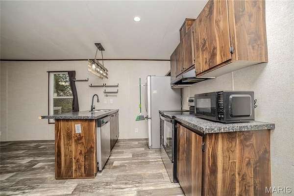 Welcome to this beautiful 2-bedroom, 2-bath manufactured home situated on 2.14 peaceful acres. This property offers a functional floor plan with a spacious open concept, huge kitchen island, and modern kitchen cabinetry. The primary suite features a private bath and generous closet space, while the secondary bedroom and full guest bath provide privacy for family or guests.