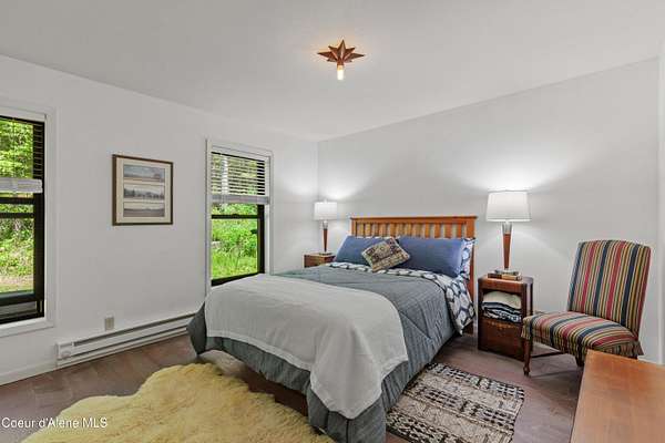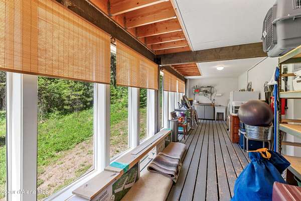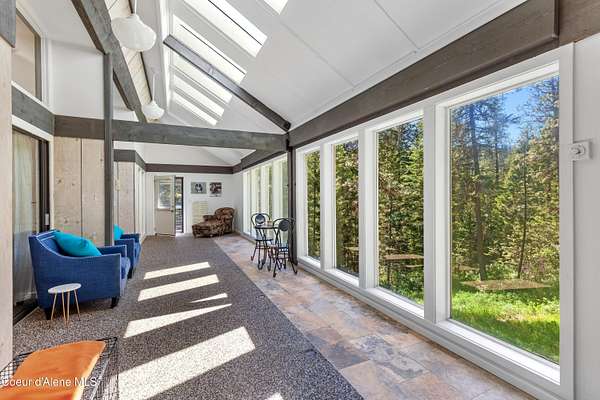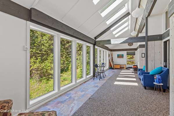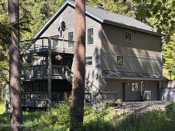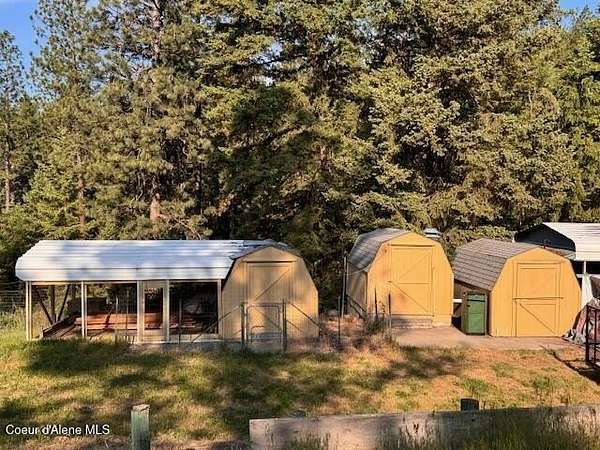 Welcome to Cougar House! Nestled on 10 private wooded acres in Cougar Estates, just 10 minutes from downtown Coeur d'Alene, this custom home blends western charm with modern upgrades. Thoughtfully designed with a southwest orientation, it features an indoor greenhouse, sunroom, updated kitchen and bath, wood floors, new roof, Andersen windows, heat pump, A/C, skylights, and three Trex decks. The tri-level layout offers cozy nooks and built-ins. Outside, enjoy a large deer-fenced garden with fruit trees, grapevines, chicken coop, sheds, 20kw diesel generator, and fuel storage. Water is supplied by both a community system and private well, with two cisterns for home and fire use. There's even a subterranean cool room! Cougar House is a one-of-a-kind retreat for those seeking beauty, independence, and a life less ordinary.