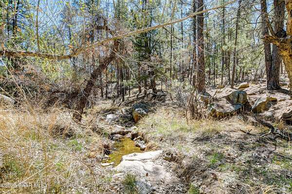 A river runs through it! This building lot is on Willow Creek, which runs much of the year depending on snowpack and rainfall. There are towering boulders and beautiful Ponderosa pines. A magnificent 5.4 acres that borders Prescott National Forest, a Girl Scout Camp, & Willow Creek. Per sellers water, electricity, and cable are in the street; this lot can potentially be split up to 4 times with four water shares; HPDWID suppplies the water through the City of Prescott. Loads of Ponderosa Pines, several possible build sites, a super location. A lot that can be split with water and electricity and this many acres is a RARE find that is less than 100K an acre! Don't worry about No Trespassing signs! Deed restrictions include min.1500 SqFt home & underground utilities. See documents. inc