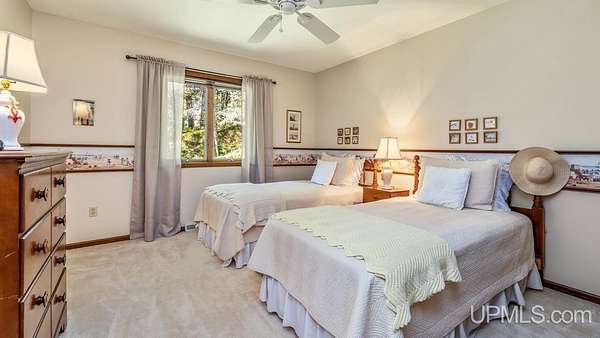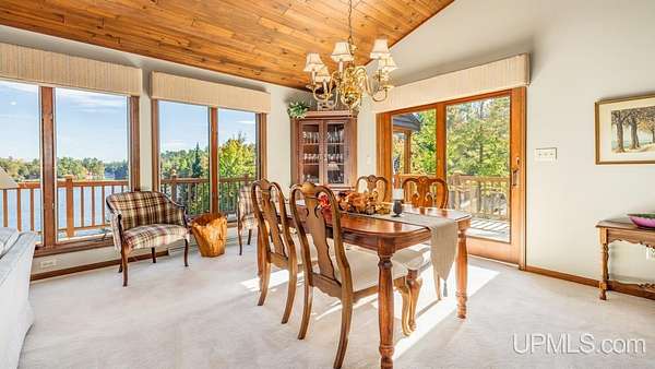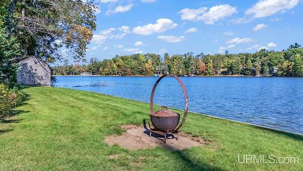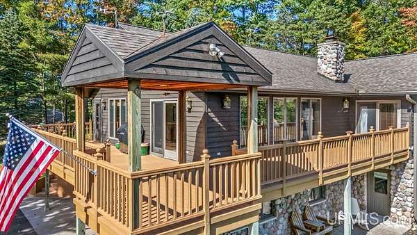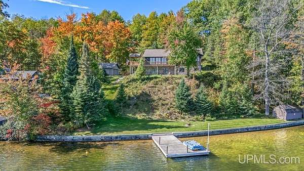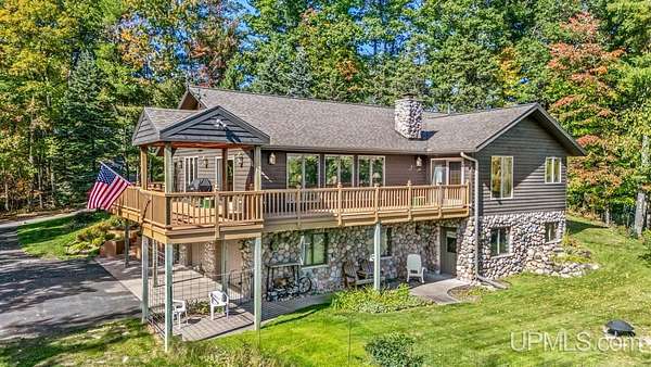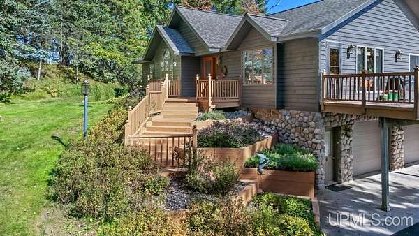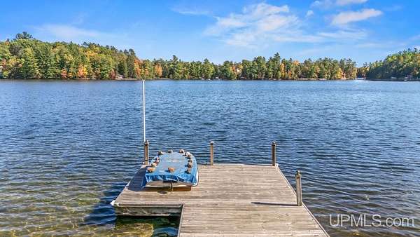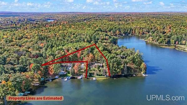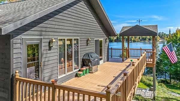 Welcome to a home where craftsmanship meets serenity -- a true Paul Lundy Construction gem, built with timeless quality and pride of ownership. Nestled on 2.65 acres of tranquil Northwoods beauty, this 2-3 bedroom, 3-bath lakefront retreat is everything you'd expect -- and more. Perched on the shores of West Lake, with 150 feet of pristine, sandy frontage, this residence offers a panoramic view of the channel, framed by nature's quiet grandeur. A gently sloping, groomed path -- perfect for golf cart access -- leads you to the water's edge, where a year-round dock awaits. Whether you're setting sail, casting a line, or soaking in the sunset, every moment here is touched by magic. Step inside to over 2,700 square feet of finely crafted living space. Gleaming hardwood floors, a full walkout lower level, and soaring vaulted ceilings welcome you with open arms. The living room is the heart of the home -- bathed in natural light and anchored by a warm gas fireplace, it invites cozy nights and meaningful gatherings. The primary suite is a luxurious escape, featuring a tray ceiling, a spa-like ensuite bath, and an extra-deep soaking tub -- your own personal haven. Designed with both beauty and function in mind, the layout flows effortlessly -- from lively entertaining on the wraparound deck, to quiet mornings with coffee and birdsong. An attached drive-under garage, plus a detached two-car garage, offer plenty of space for all your lakeside adventures. Set on the renowned Spread Eagle Chain of Lakes -- an 8-lake treasure spanning 527 acres with an average depth of 45 feet -- this is a community rich in recreation, natural beauty, and a spirit of belonging. This is not just a home. It's a lifestyle. A sanctuary. A legacy waiting to be yours.
