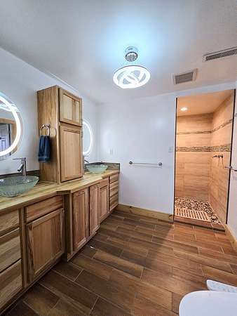- Auto Garage Opener, Ceiling Fan(s), High Ceilings, Jetted Tub, Pantry, Shades/Blinds, Smoke Detector(s), Tile Flooring