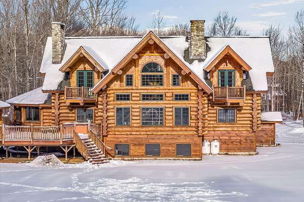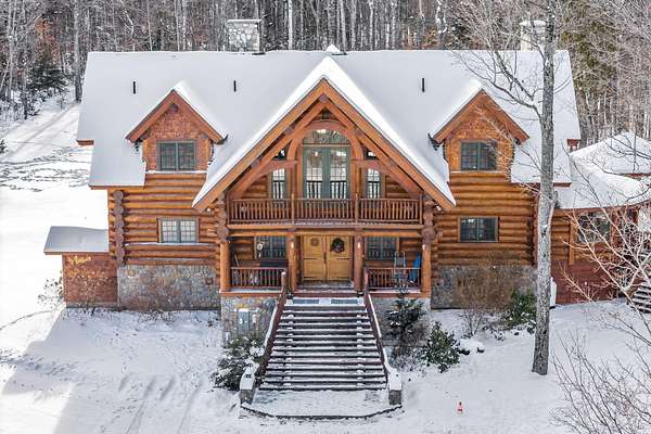Discover Fireside LodgeaEUR"a hand-crafted, full-scribe log masterpiece set on 2.83 private acres at the base of Sugarloaf Mountain. Built by Tobique Log Homes after a meticulous three-year construction process, this extraordinary property embodies true "trophy home" craftsmanship with artistry in every detail. Designed for gathering, entertaining, and enjoying the mountains year-round, the lodge features 5 bedrooms, 4 bathrooms, and 14 rooms, including a bunk room, game room, bar room, and a dedicated ski-tuning room. With seven fireplaces, a spectacular grand log staircase, and cathedral ceilings, the interior feels both expansive and warmly inviting. The stoneworkaEUR"crafted from Corinthian granite, Red Canadian fieldstone, and Maine fieldstoneaEUR"adds natural elegance throughout. Outdoors, a 1,400+ sq. ft. deck with a gazebo, room for a hot tub, and outdoor dining space overlooks Bracket Brook, providing the perfect aprA?s-ski or summer relaxation setting. A firewood elevator, sauna, radiant floor heat, security system, and full-home sound system ensure comfort and convenience. A 900 sq. ft. detached garage with overhead storage completes the package. Whether hosting large gatherings, multiple families, or retreat-style stays, Fireside Lodge comfortably sleeps many and offers unmatched ambiance in every season. Enjoy direct proximity to Sugarloaf's ski slopes, golf course, mountain biking, Maine Huts & Trails, the Appalachian Trail, and the Flagstaff and Rangeley Lakes Region. A rare opportunity to own one of Carrabassett Valley's most iconic and admired log homesaEUR"an exceptional legacy property built for generations to enjoy.
