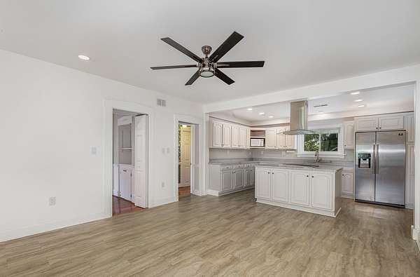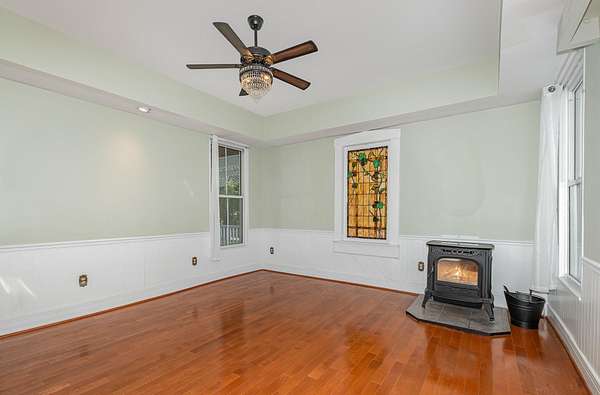 - Attic Storage, Bookcases, Ceiling Fan(s), Chandelier, Eat-In Kitchen, Entrance Foyer, High Ceilings, Kitchen Island, Master Downstairs, Natural Woodwork, Pantry