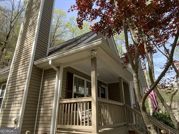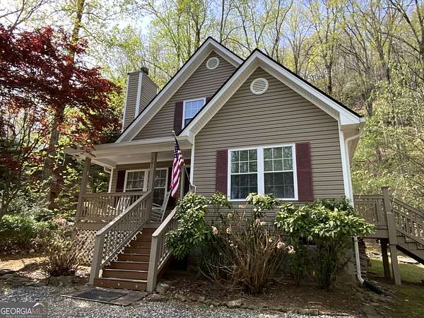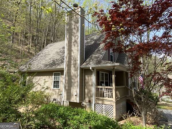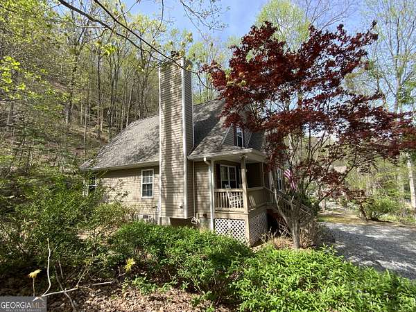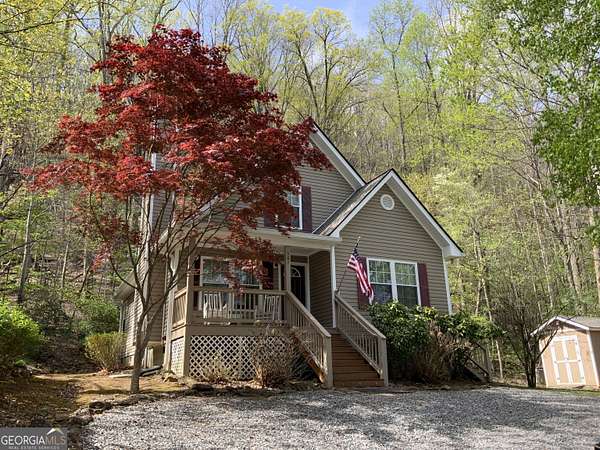 This charming contemporary cottage features a BRAND NEW ROOF (January 2026) and is ideally located between Cleveland, Helen, and Clarkesville, with convenient access to Duncan Bridge Road (Hwy 384) for an easy Gainesville commute. Situated within the award-winning Mt. Yonah Primary School district, this property offers both comfort and convenience. Set on 2 beautiful acres, the home boasts a natural landscape highlighted by unique rock outcroppings, creating a truly special setting. Enjoy seasonal mountain views from the inviting rocking chair front porch. Inside, the open-concept kitchen, living, and dining area creates a warm and welcoming atmosphere, complete with a cozy wood-burning fireplace. The primary bedroom is located on the main level and features two closets along with a recently renovated ensuite bath showcasing quartzite countertops and a double vanity. A convenient half bath combined with the laundry room includes a washer (2022) and dryer (2024), both in excellent condition. Lightly lived in and used only as a vacation home, this mountain retreat has been meticulously maintained and thoughtfully upgraded over the years. Improvements include LVP flooring, updated bathrooms with quartzite counters, a whole-house water filtration system, a farmhouse kitchen sink, updated lighting fixtures, and more. The kitchen offers ample cabinetry along with a pantry featuring a built-in shelving system. Two new HVAC systems were installed in fall 2024 and include programmable thermostats. Upstairs, you'll find generously sized bedrooms with large closets and additional storage tucked into the eaves. An energy audit confirms the home's efficiency, adding to its appeal. Outside, a storage building with a brand-new shingle roof provides excellent space for tools, hobbies, or a workshop. This well-cared-for mountain cottage is a rare find-perfect as a full-time residence or a peaceful getaway. Dont forget to notice the NEW ROOF!