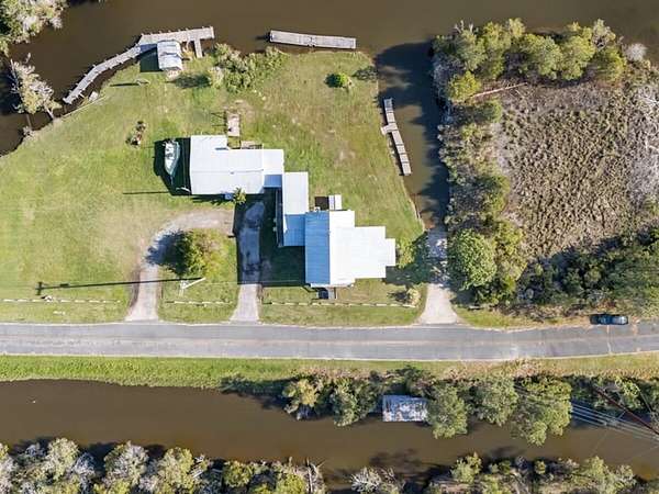 Offering modern comfort with rustic charm, amenities include county water, septic, and central air/heat. Situated on over 300 feet of canal frontage, the lodge provides private ramps and docks with direct access to the Intracoastal Waterway.