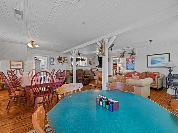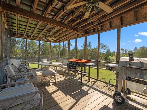 At the heart of the property is the historic Bridgehouse Duck Hunting Lodge. Built in 1939, this 2,923 sq ft, three-story lodge features 7 bedrooms and 4 bathrooms, accommodating up to 28 guests.