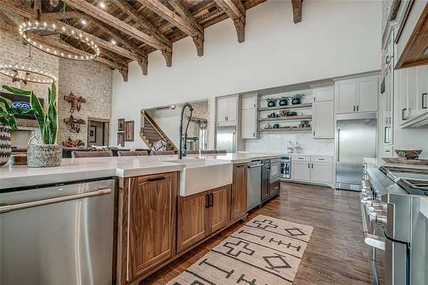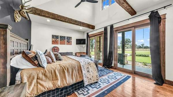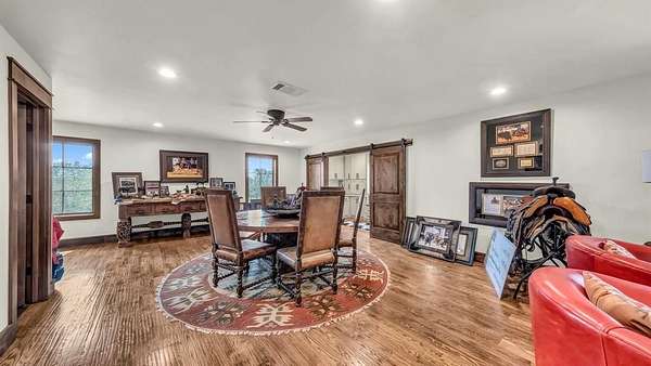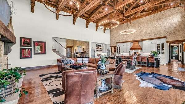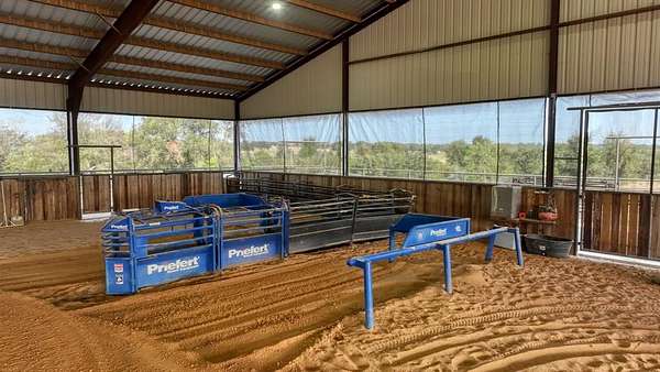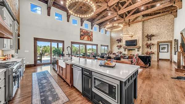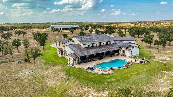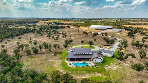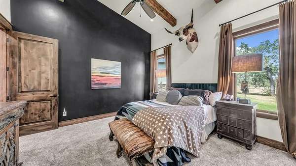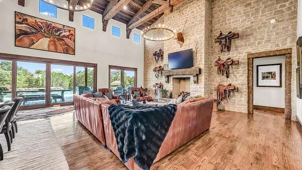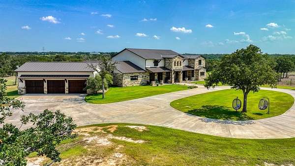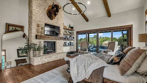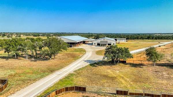 Nestled in the rolling hills of Mineral Wells, this remarkable 69+- acre estate combines refined luxury with the serenity of wide-open Texas ranch land. At its center stands a custom 6,114+- square-foot residence, thoughtfully designed with five bedrooms, five full bathrooms, and two half-baths. Every detail has been carefully curated, blending rustic elegance with modern convenience. Inside, you'll find expansive living spaces anchored by a dramatic rock fireplace and soaring wood-beamed ceilings. The chef's kitchen is a true showpiece, featuring premium appliances, dual dishwashers, a spacious pantry, and a functional layout designed for both entertaining and everyday living. You'll love the butler's pantry that provides additional storage. A wall of windows brings the outdoors in, connecting seamlessly to the back patio and sparkling pool, where sweeping views of the surrounding countryside set the stage for unforgettable gatherings. The master suite is a private retreat, complete with its own stone fireplace, spa-inspired bathroom, and an oversized closet with custom finishes. Additional bedrooms are equally well-appointed, offering comfort and privacy for family and guests alike. Beyond the home, the ranch is built for both leisure and function. Rolling pastures, mature trees, and ample space provide endless opportunities for recreation, livestock, or hay production. There is a seasonal creek that run through the property. The property also features a 125' x 250' covered arena-perfect for any discipline, an 18-stall horse barn, and a Priefert walker, making it ideally suited for any equine needs. This estate offers a rare combination of luxury, seclusion, and versatility--just minutes from Mineral Wells and within easy reach of the DFW Metroplex. This house is a rare find! It was recently featured in the Cowgirl Magazine!