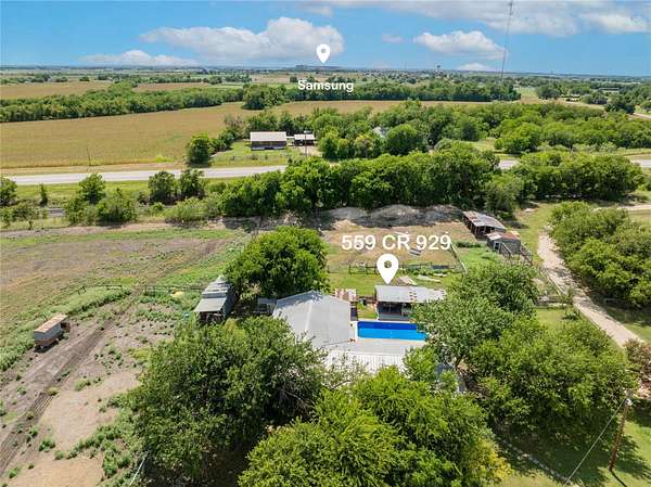 Ranchette Compound in town and in direct path of growth in Taylor- just outside the southern city limits. Two homes, on three parcels, with pastures, ponds, trees, and no restrictions! Come enjoy the beauty of the updated and renovated ranch homes with privacy and still minutes to shopping, school and more. The Primary home is an updated Farmhouse -Renovated in 2022, the home blends modern design with rustic charm--featuring quartz countertops, newer appliances, tall ceilings with wood beams, and a cozy wood-burning stove. The spa-like primary bathroom is truly a retreat. This single-story layout offers flexibility and space, with an oversized living area and a dedicated home office. Step outside to enjoy a 4-ft pool, covered patio, and grilling area--perfect for relaxing while overlooking trees and fenced pastures currently home to chickens and goats. Equipped for functionality and future use, the property includes a large barn, a 3-stall barn, and a storage building--ideal for workshops, equipment, or potential guest or income-producing space. Also included is the 7+ acre pasture across the driveway with secondary access from SH 95--adding both convenience and investment appeal. The secondary home down south on the other side of the 7 acre pasture is the smaller guest house - moved from East Austin- updated 3 bed- 2 bath home. The northern parcel is 19+ acres with 2 ponds, trees and stunning private terrain. more than 5000 ft of Hwy 95 frontage on entire parcel