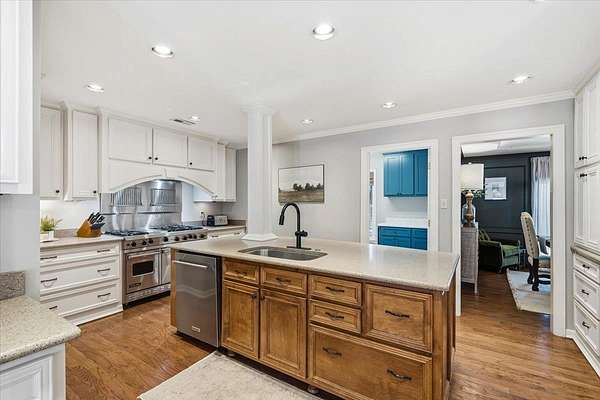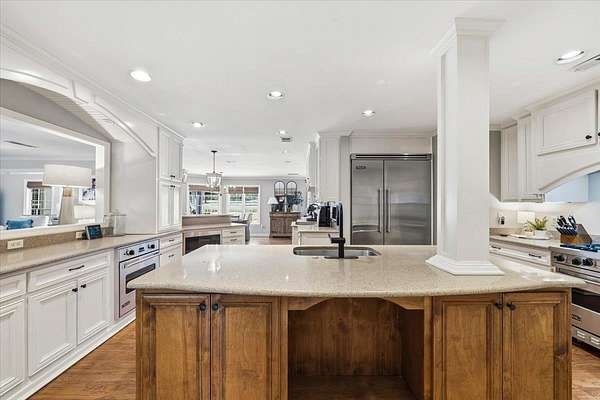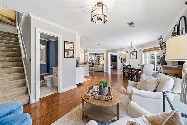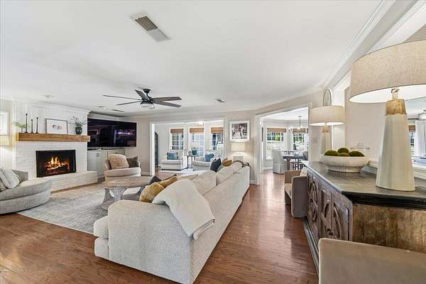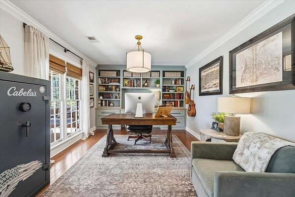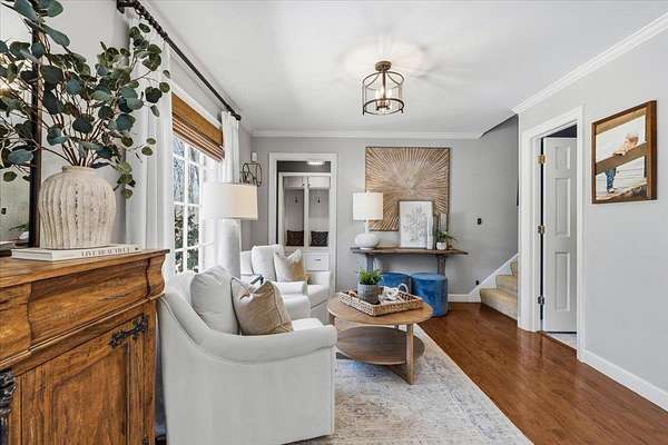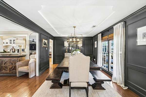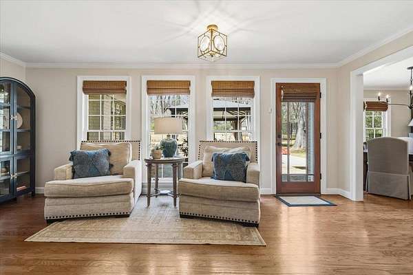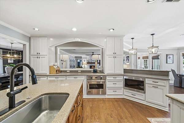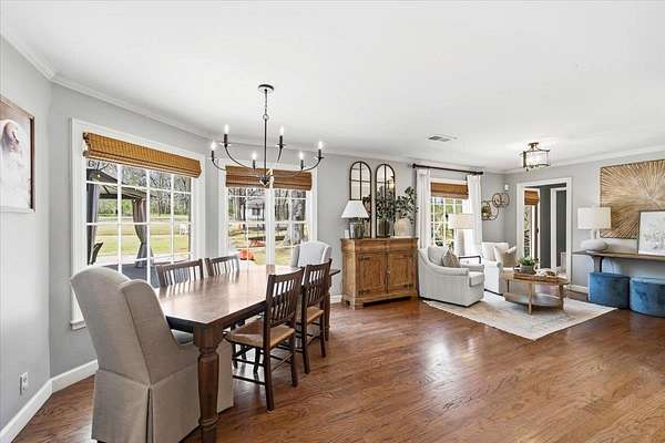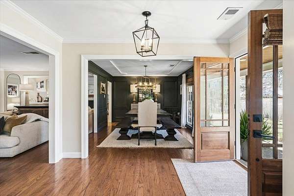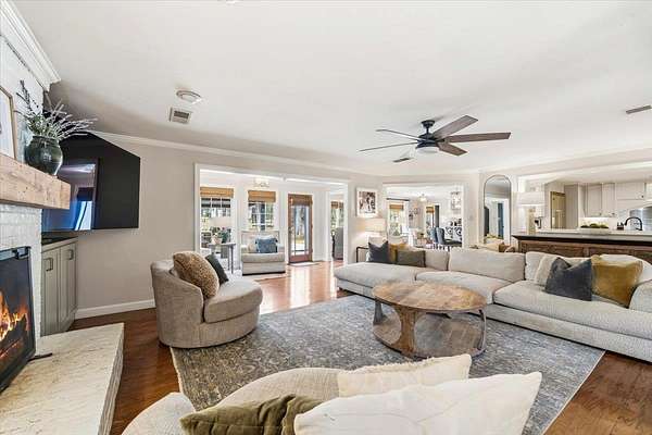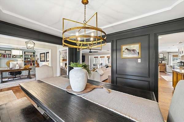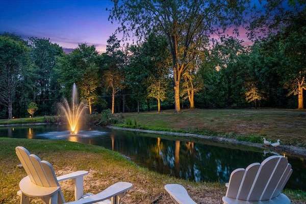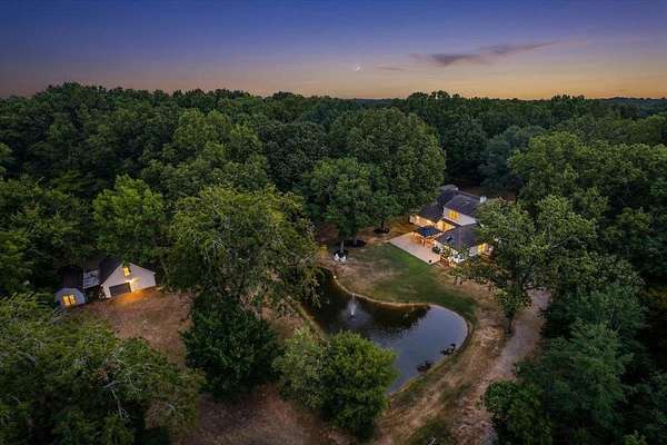 Set on 4 private acres with no city taxes, this one-of-a-kind estate offers a rare combination of seclusion, beauty, and timeless style. Surrounded by mature trees and scenic views, and an incredible workshop/mancave out back, the property feels like a retreat while showcasing a stunning interior with expansive living areas, upscale finishes, designer lighting, and a kitchen made for gathering. Thoughtfully designed for both entertaining and everyday living, the home offers a flexible layout, gorgeous natural light, and peaceful views throughout. Outdoor spaces are just as impressive, featuring a large front porch, covered entertaining areas, stocked pond, and detached guest/workspace. An exceptional opportunity to own a truly distinctive property.