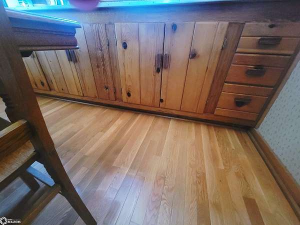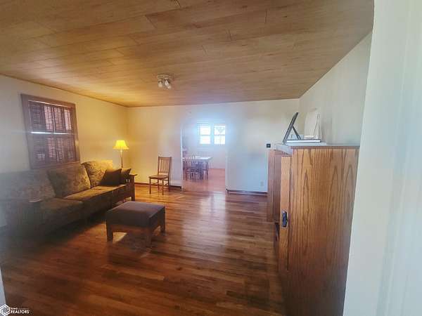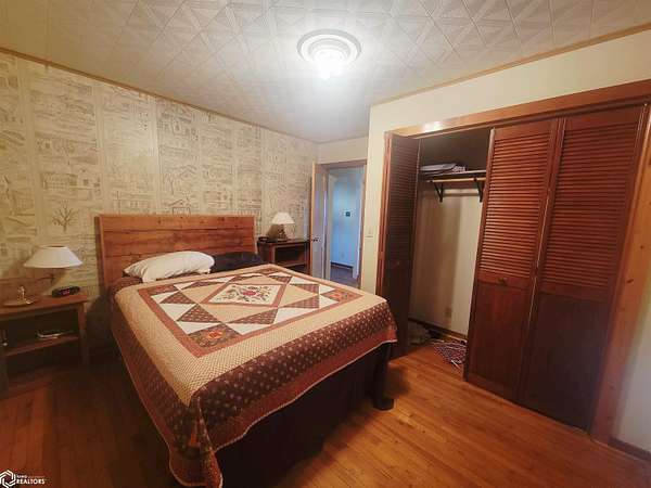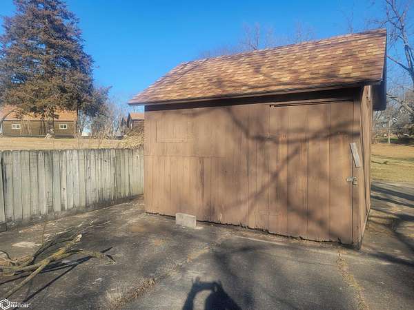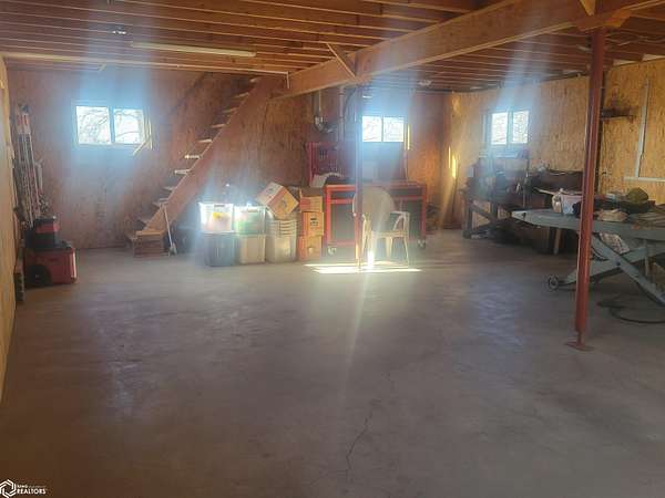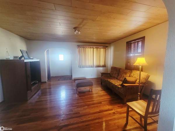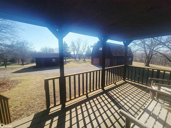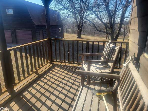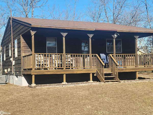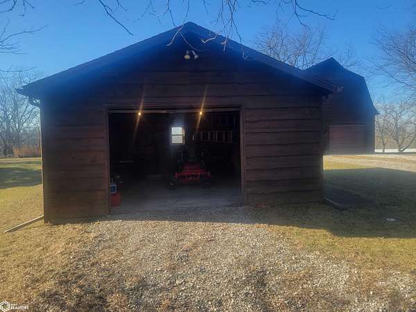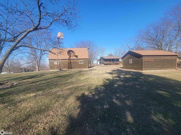 Your 2026 New Year's resolution of owning an acreage can be realized with this complete package of home, barn and seven acres of land which can be utilized for most any purpose. The park-like setting is your personal space but has close connections to Leon Golf & Country Club and Little River Recreation Area. At the edge of town, you'll appreciate city utilities and its close enough to amenities for utmost convenience. The rustic-feel, one level home, has original hardwood floors, metal roofing and wood siding which needs very little maintenance. Small spaces work whether you use it as your permanent residence or weekend getaway. The barn is home to additional garage spaces on ground level and finished flexible space in the attic/loft which has central heating and cooling. This space is so versatile you won't have any trouble finding uses. In addition, there's a detached garage for vehicle and other small sheds for lawn and garden. The owner has taken great care with this property for over 50 years and offers it to be another owners' desire for the great outdoors. There is railroad right of way which is owned and being conveyed which runs along the western edge and continues north/south for several hundred yards. As spring approaches, the trees will sprout their beauty and frequent wildlife will have a better haven for nurturing. The owner has planted several personal favorites which adds to the already awesome landscape! Its an opportunity seldom matched in southern Iowa!