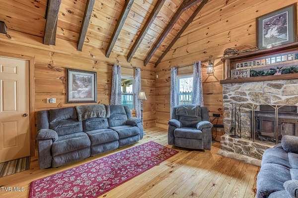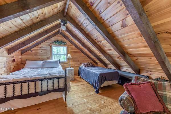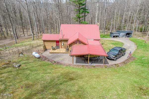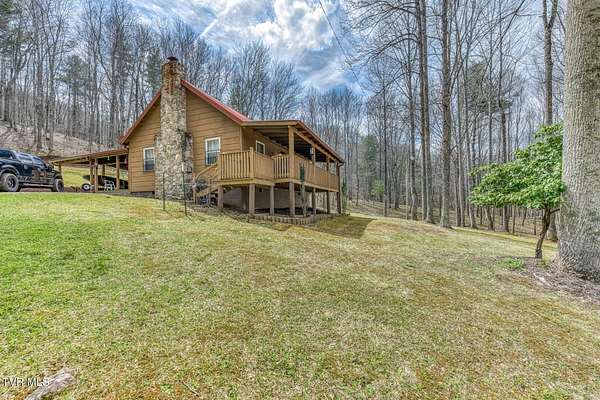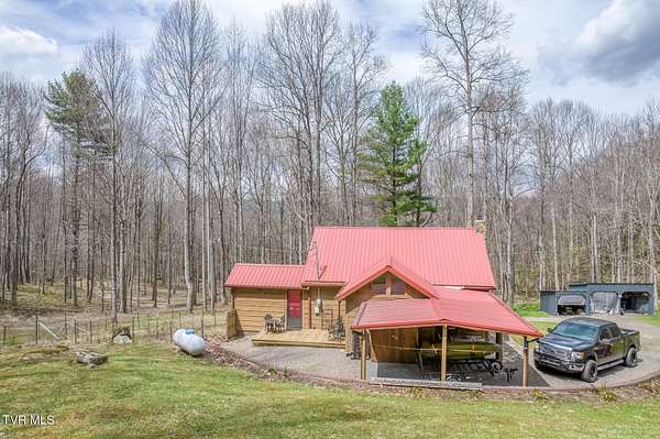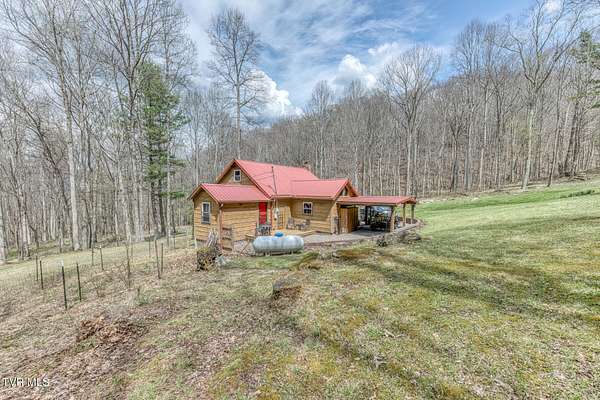 Just what you have been looking for! Take a look at this beautiful East TN mountain cabin, perfectly situated on a mostly wooded lot (9.22 +/- acres) with mature trees and several small mountain streams, you will not have to worry about lack of privacy here! Sit on the covered porch and listen to the water tumbling over the rocks or the wind rustling through the trees while watching the wildlife that can frequent the property. This cabin was designed perfectly for that mountain vacation retreat or for a permanent residence. Inside you will find plenty of natural light that showcase the log sided walls, pine flooring, and the gorgeous vaulted tongue and groove ceiling and exposed beams. The living area features a natural stone fireplace for those cool fall evenings. The kitchen area contains plenty of custom cabinetry with tile flooring and ample counter space to prepare those home cooked meals! The open loft area provides a great space for a home office (internet already to the property). Plenty of outdoor entertainment areas are available with the two covered porches and one open deck. The attached carport and detached shed provide ample parking and storage. Located within a easy driving distance to the Boone NC area ski slopes, Watauga Lake, Doe Mountain Recreation Area, Virginia Creeper Trail, Appalachian Trail, Bristol Motor Speedway, and lots of other area amenities/attractions. If you are searching for a secluded mountain property with plenty of acreage to roam you need to take a look! Buyer/agent to verify all information.