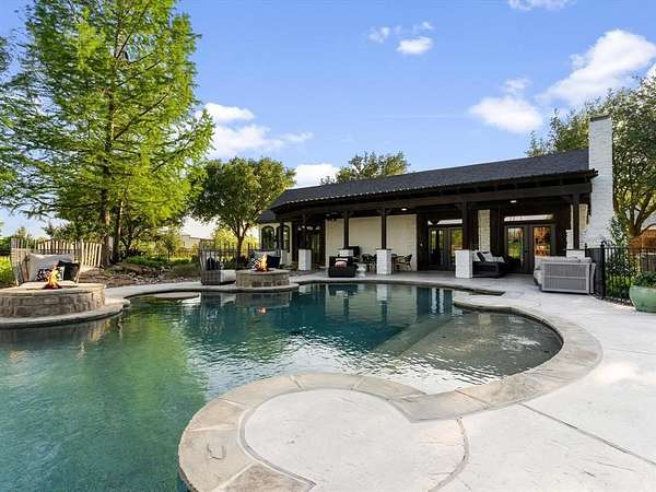 1.59 Acres - Guest House - 2 Story Workshop - Sparkling, Heated Pool - Koi Pond! A Private Sanctuary just north of Fort Worth. Located in award-winning Aurora Vista, this masterfully redesigned estate delivers an exceptional blend of luxury, versatility, and resort-style living on a sprawling lot, adjacent to protected greenspace that will not be developed. From the moment you arrive, curated design, expansive spaces, and elevated finishes set the tone for a home unlike any other.